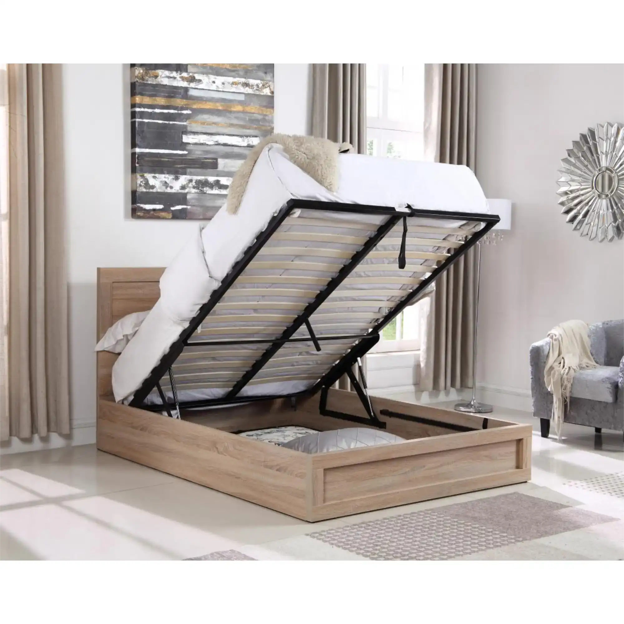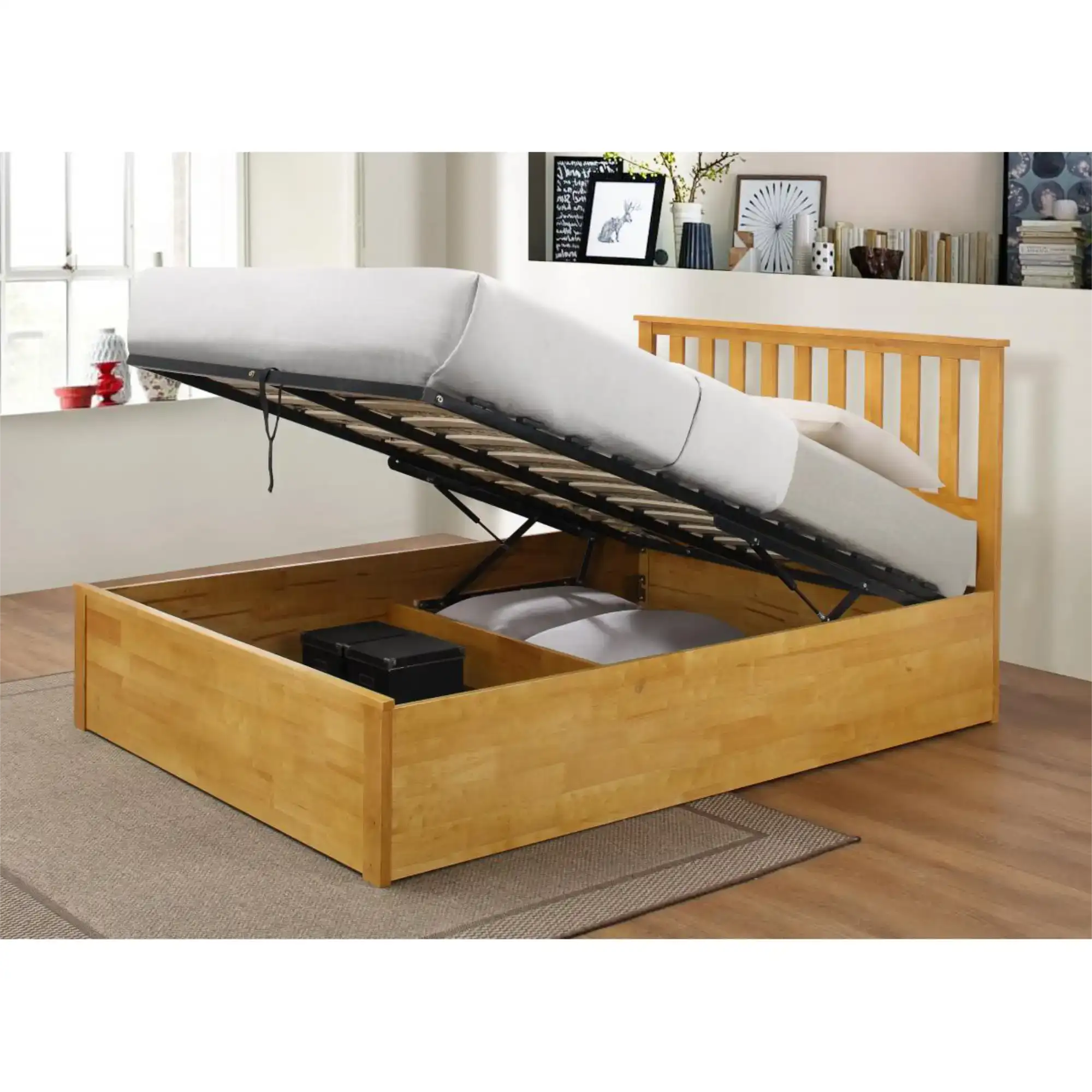 Solid Rubberwood King Size Storage Bed in Oak Finish