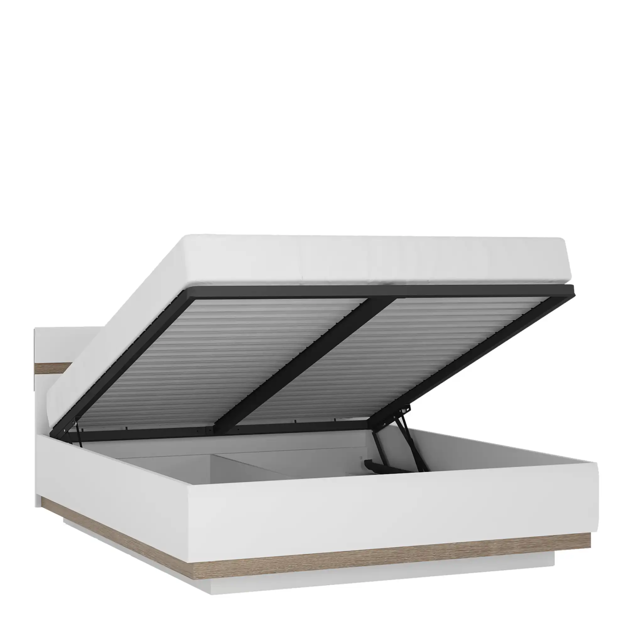 Chelsea Bedroom Kingsize Bed in White with a Oak Trim with Lift Up Function
