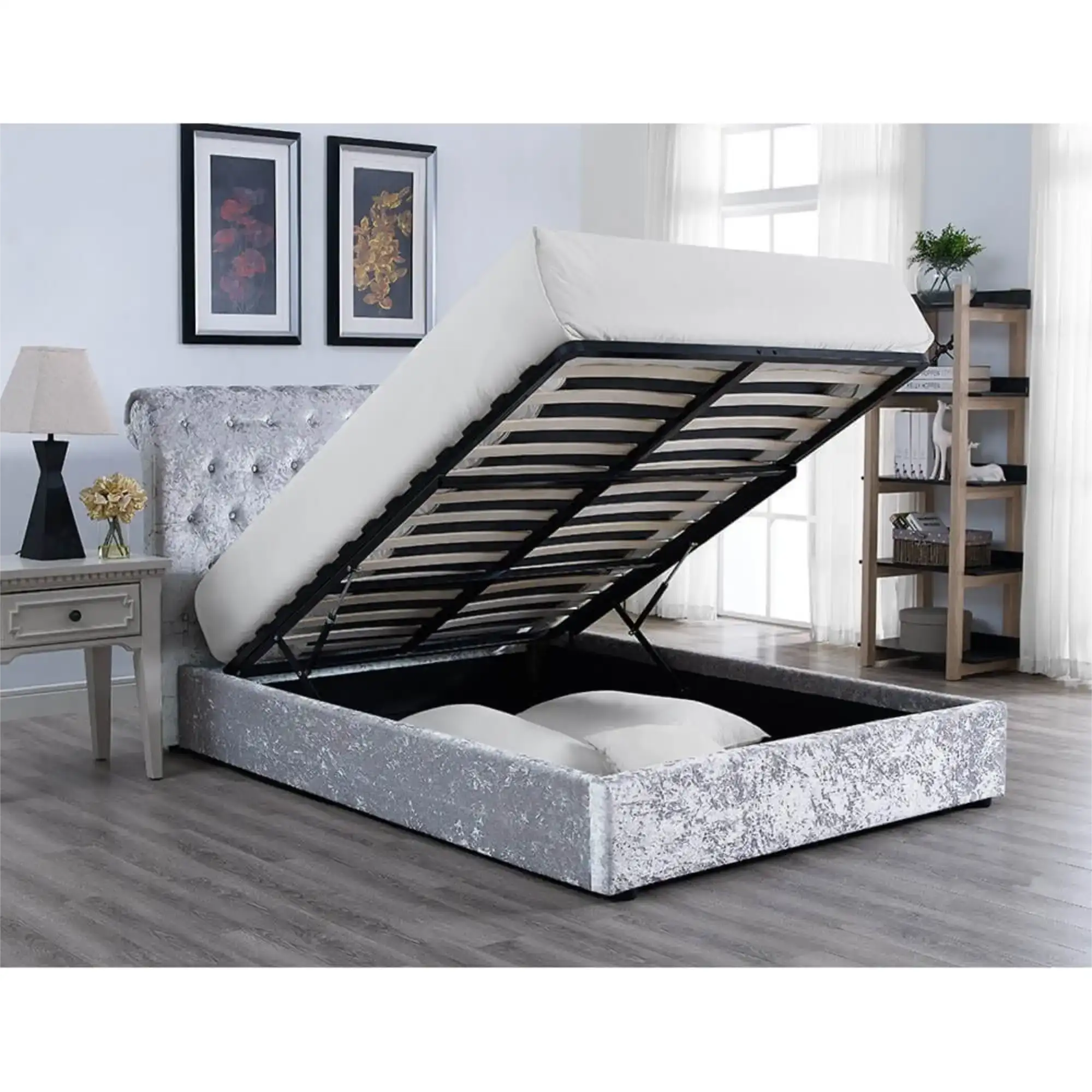 Casablanca Storage Crushed Velvet King Size Bed Grey