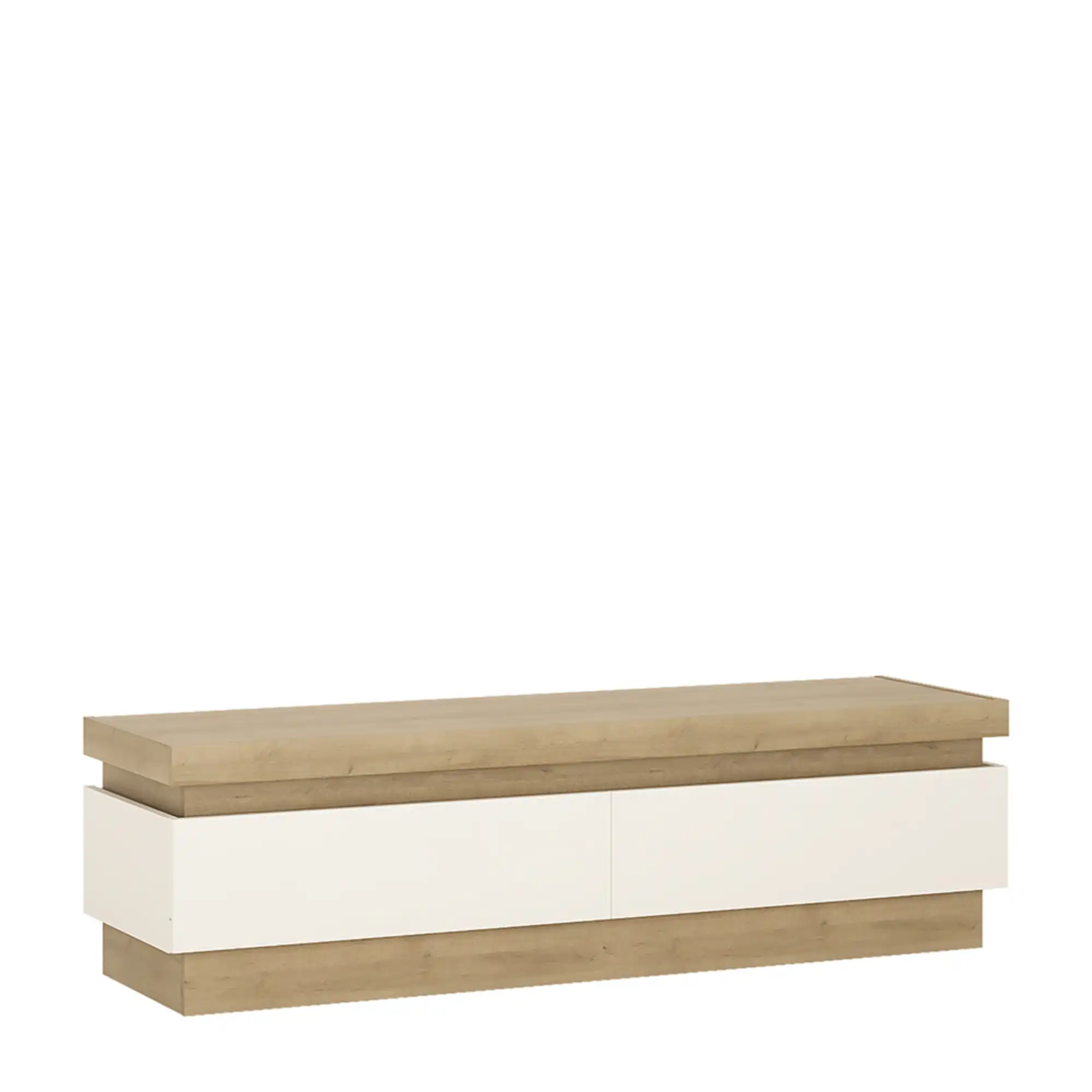 2 Drawer TV Cabinet in Riviera Oak and White High Gloss