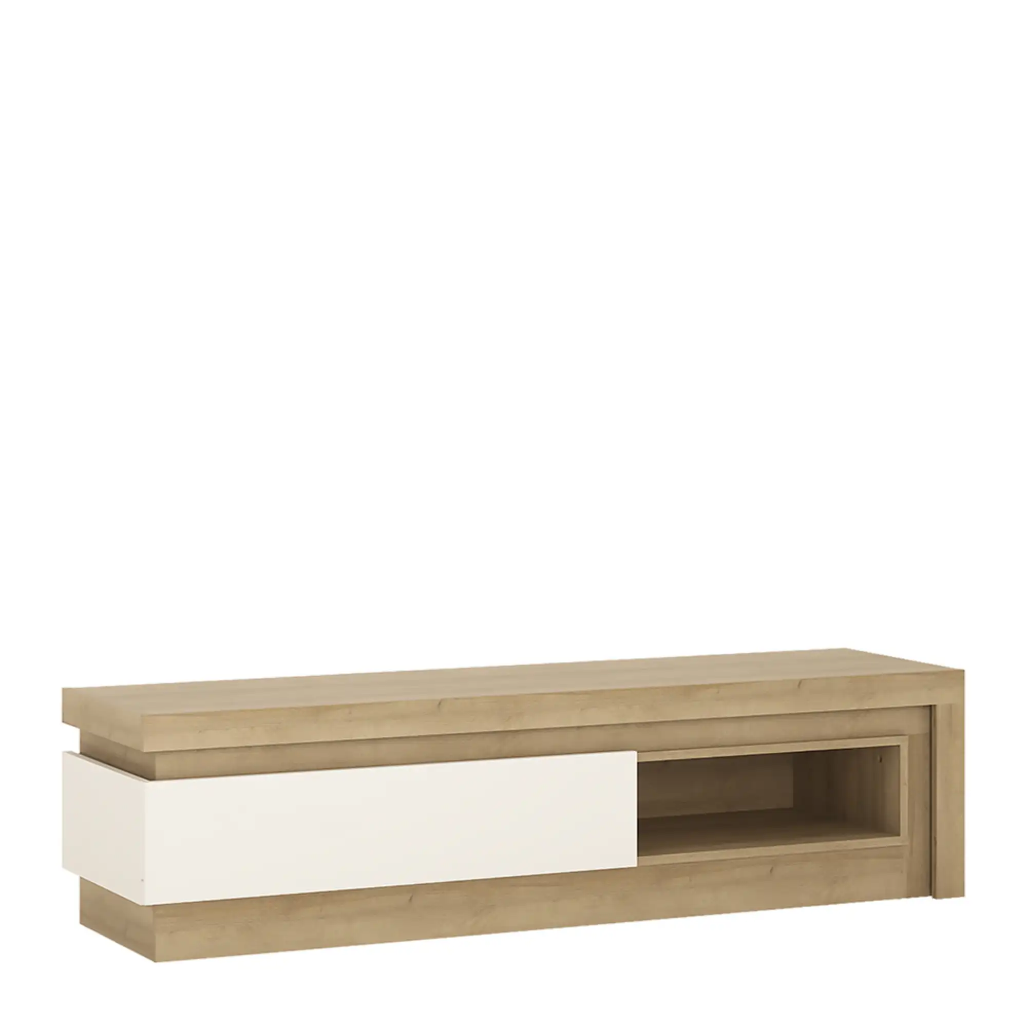 1 Drawer TV Cabinet with Open Shelf in Riviera Oak and White High Gloss