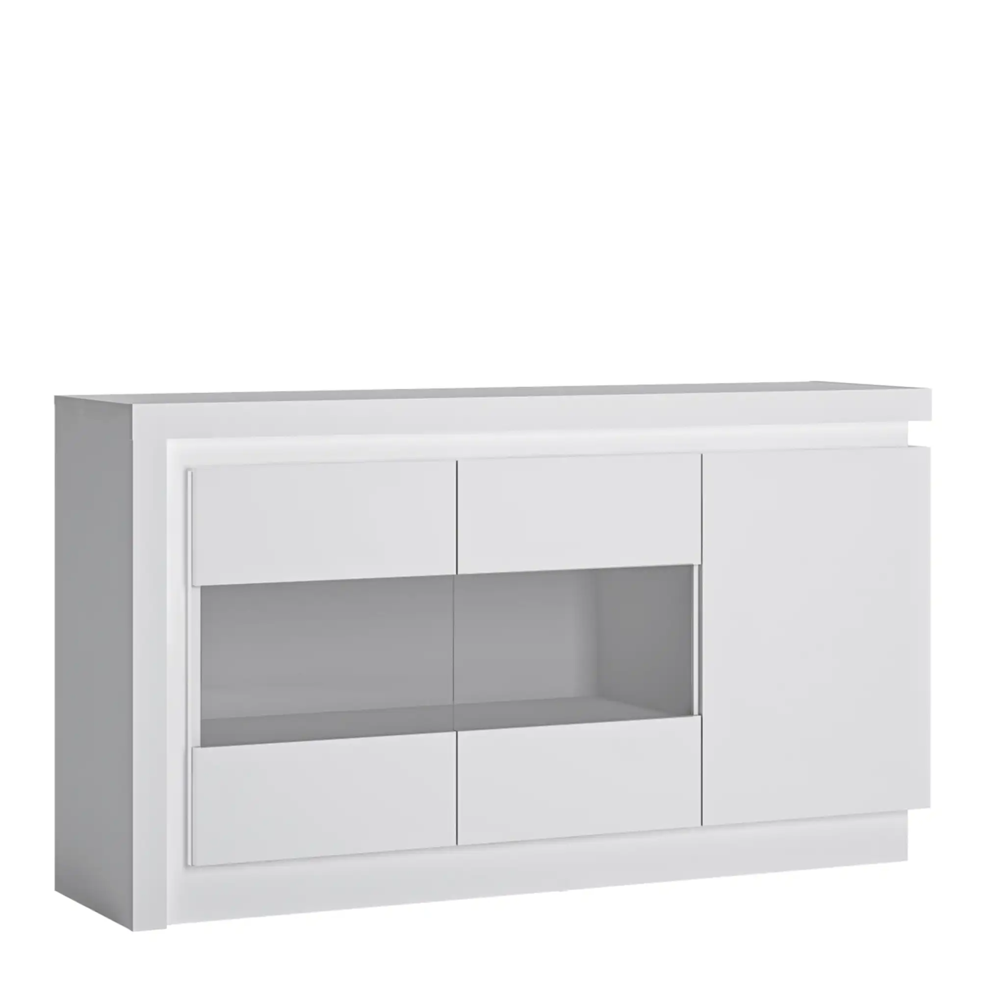 3-Door White High Gloss Glazed Sideboard with LED Lighting