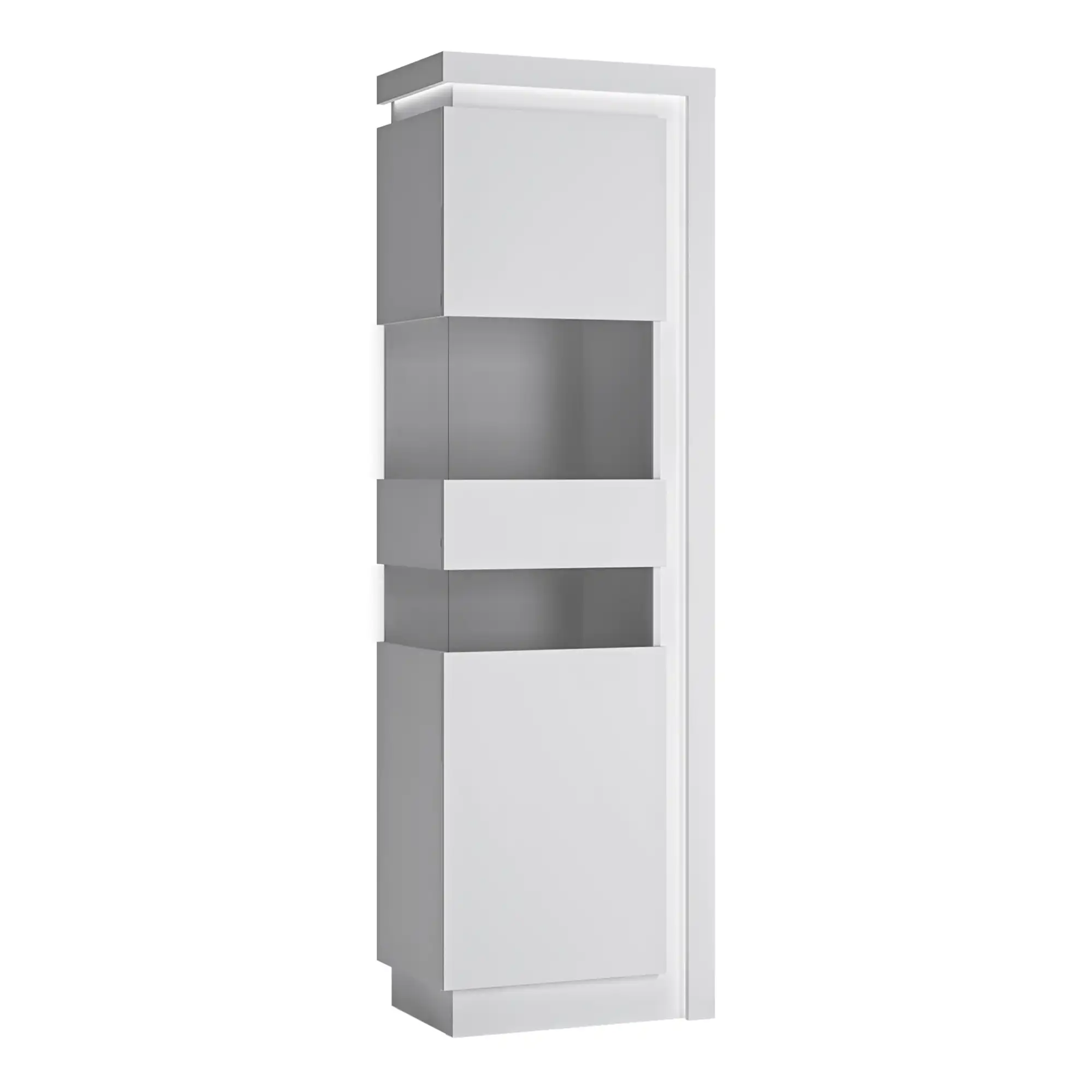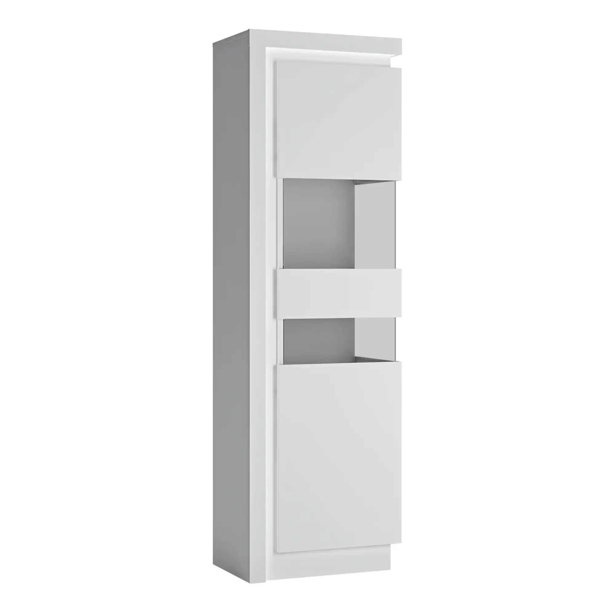 Tall Narrow White High Gloss Display Cabinet with LED Lighting (RHD)