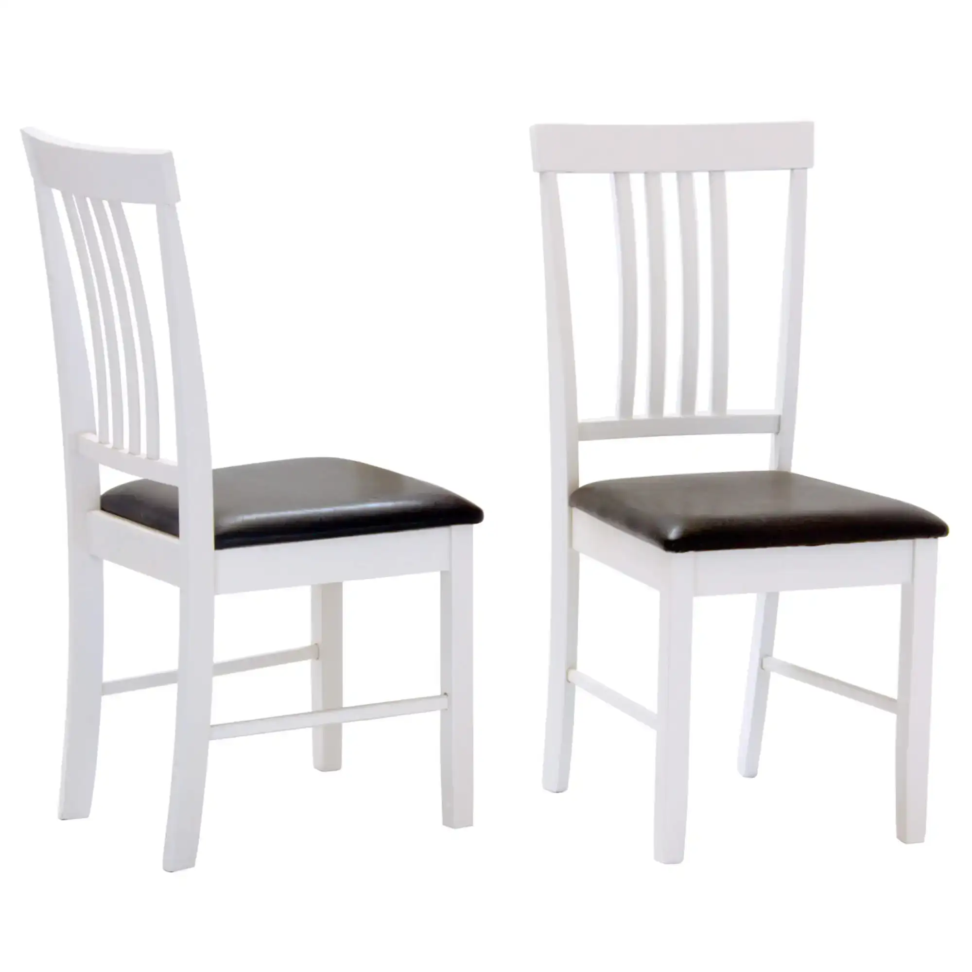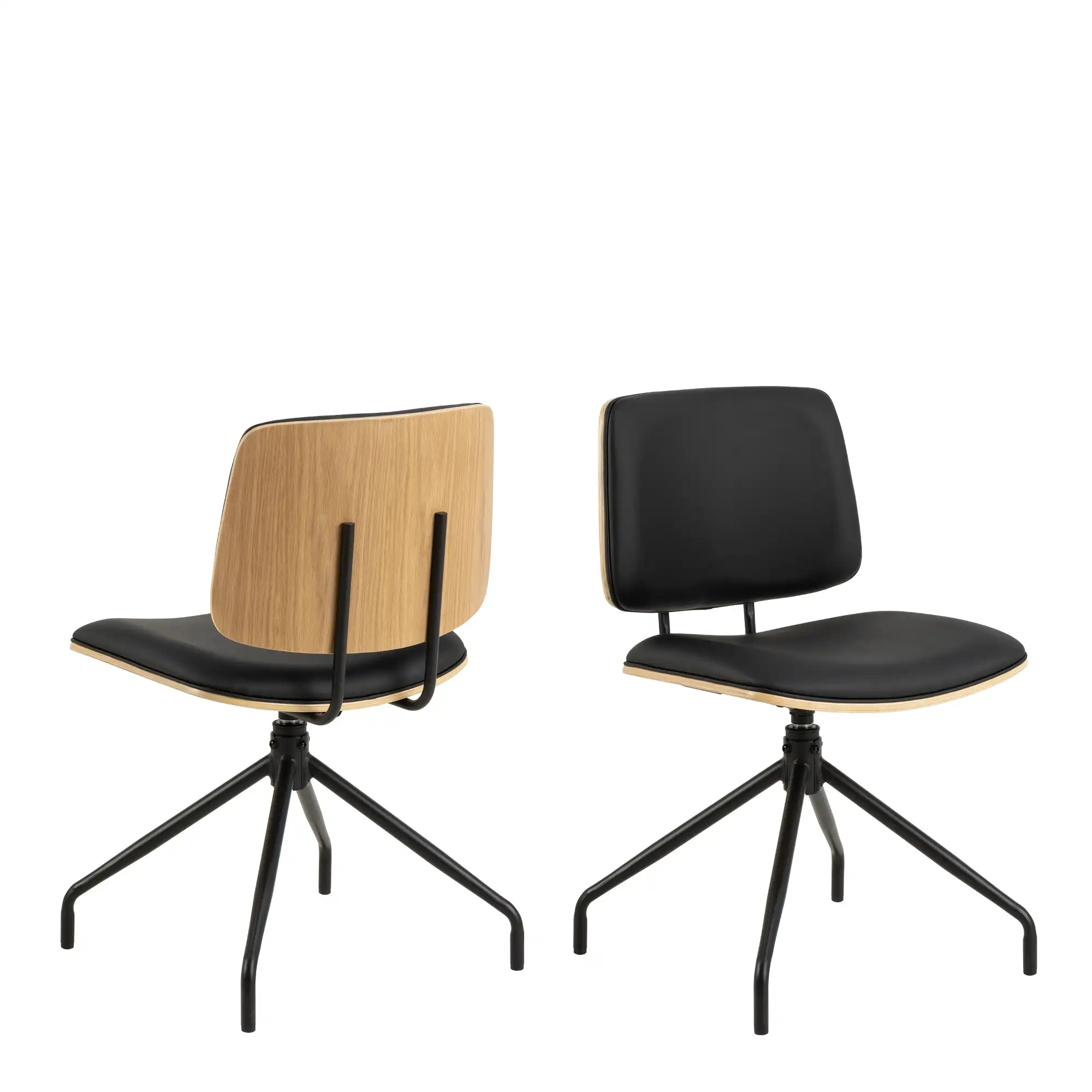 Set of 2 Natural Oak Dining Chairs with Black PU Seat Pads