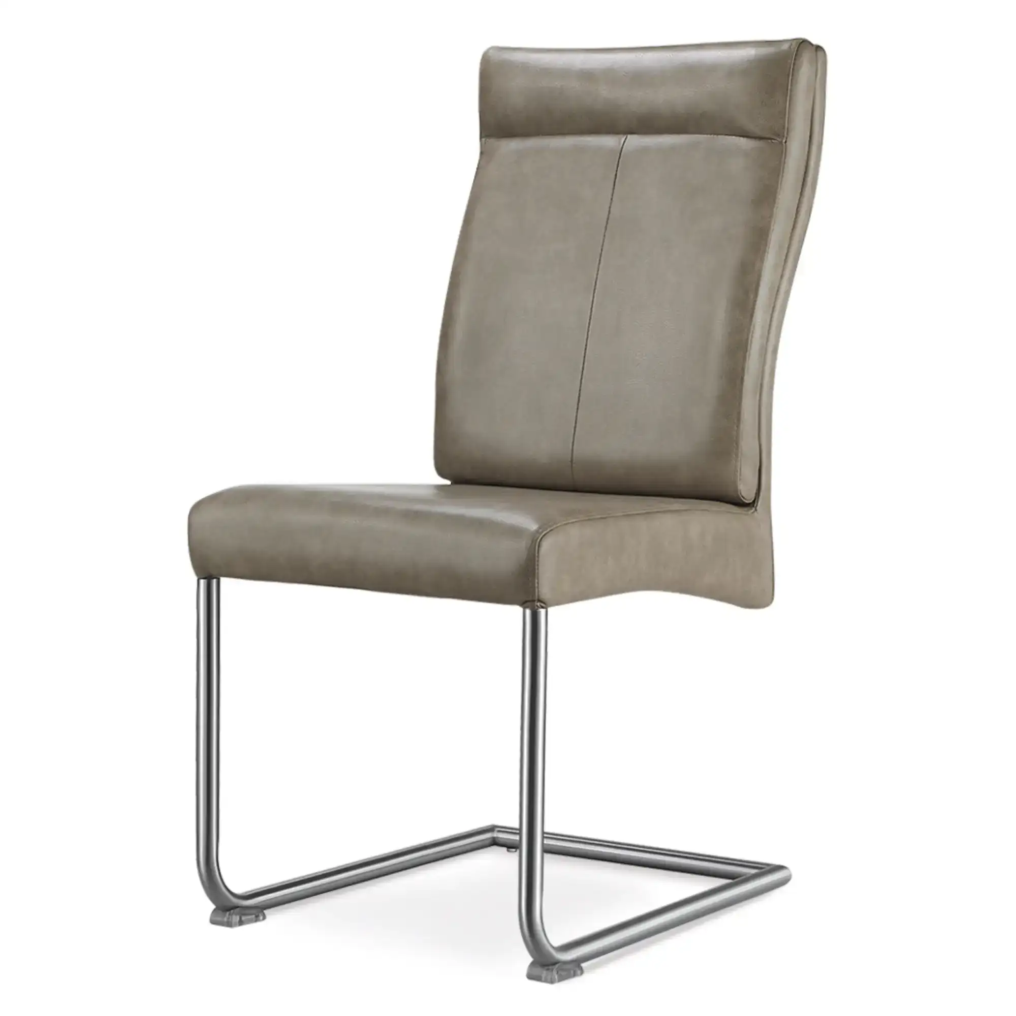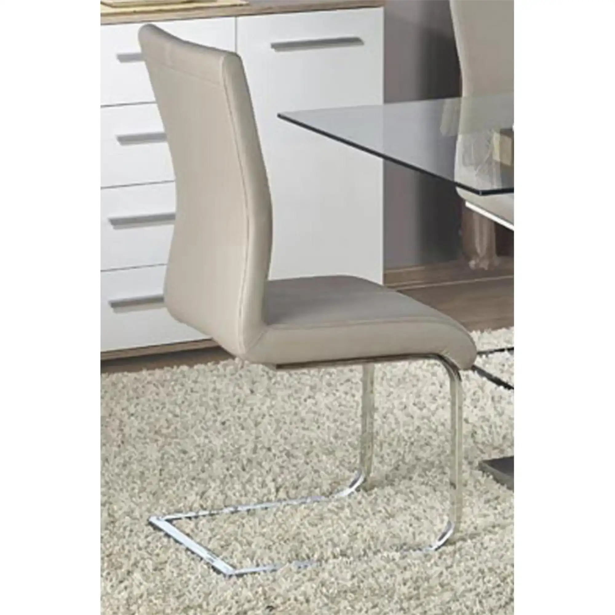 Set of 2 Chrome and Taupe PU Leather Dining Chairs
