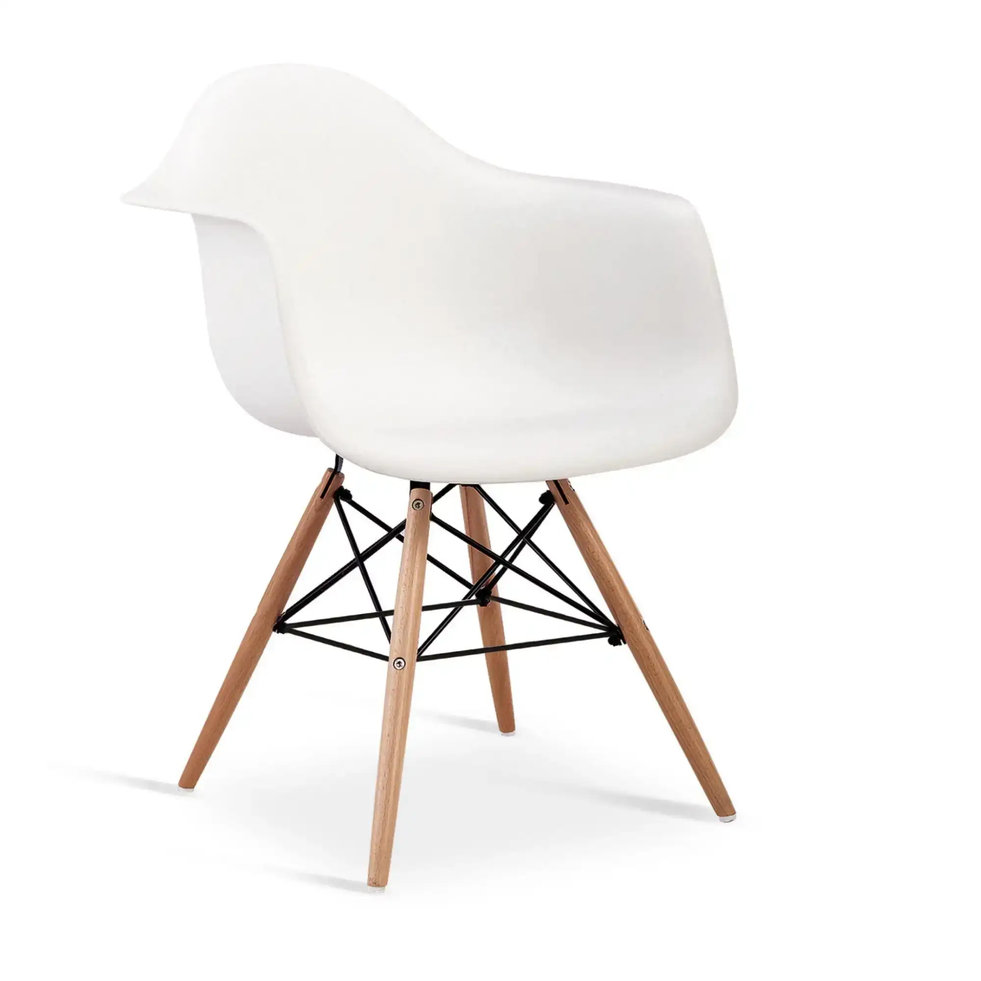 White Plastic Chairs with Solid Beech Legs (Set of 4)
