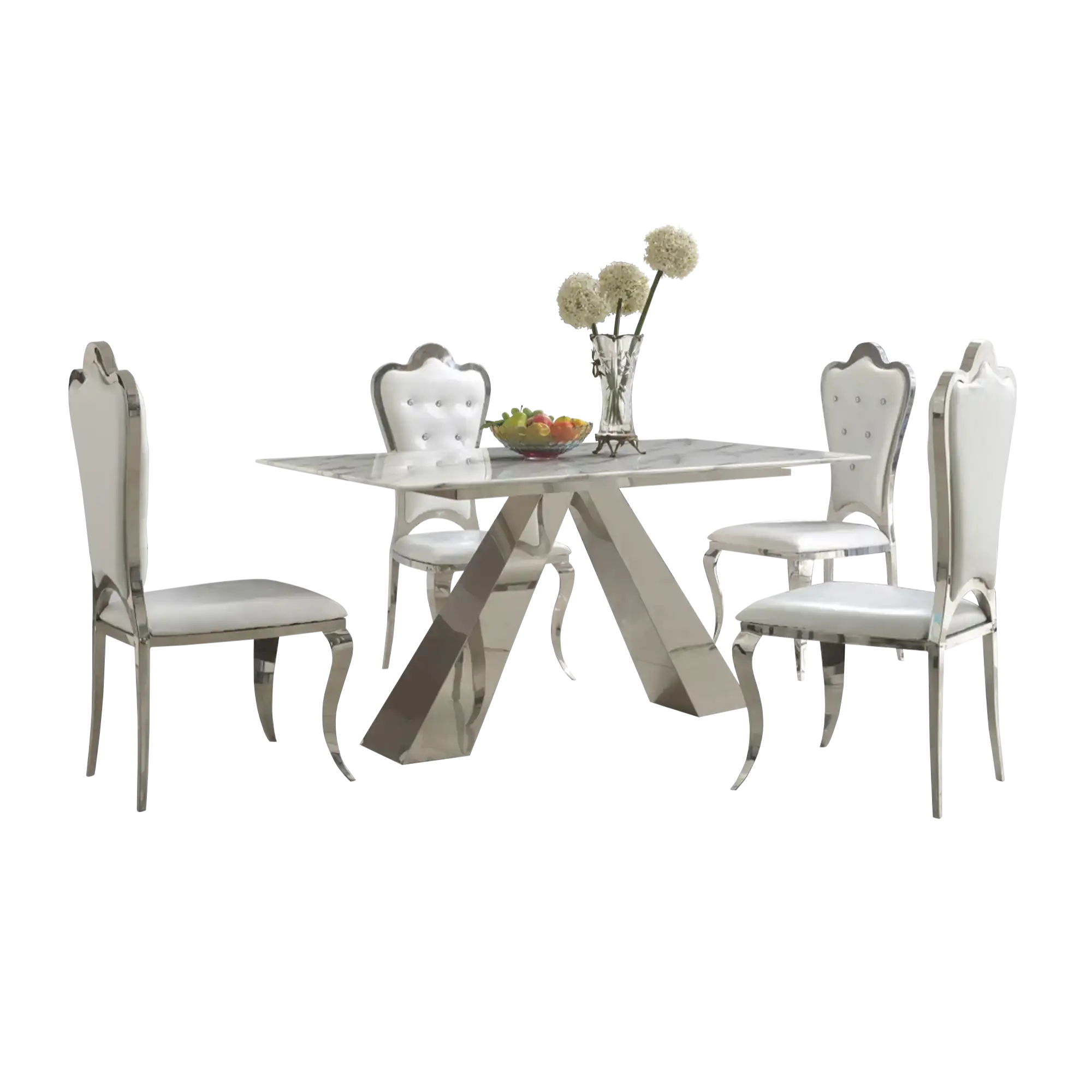 White PU and Stainless Steel Dining Chair (Set of 2)