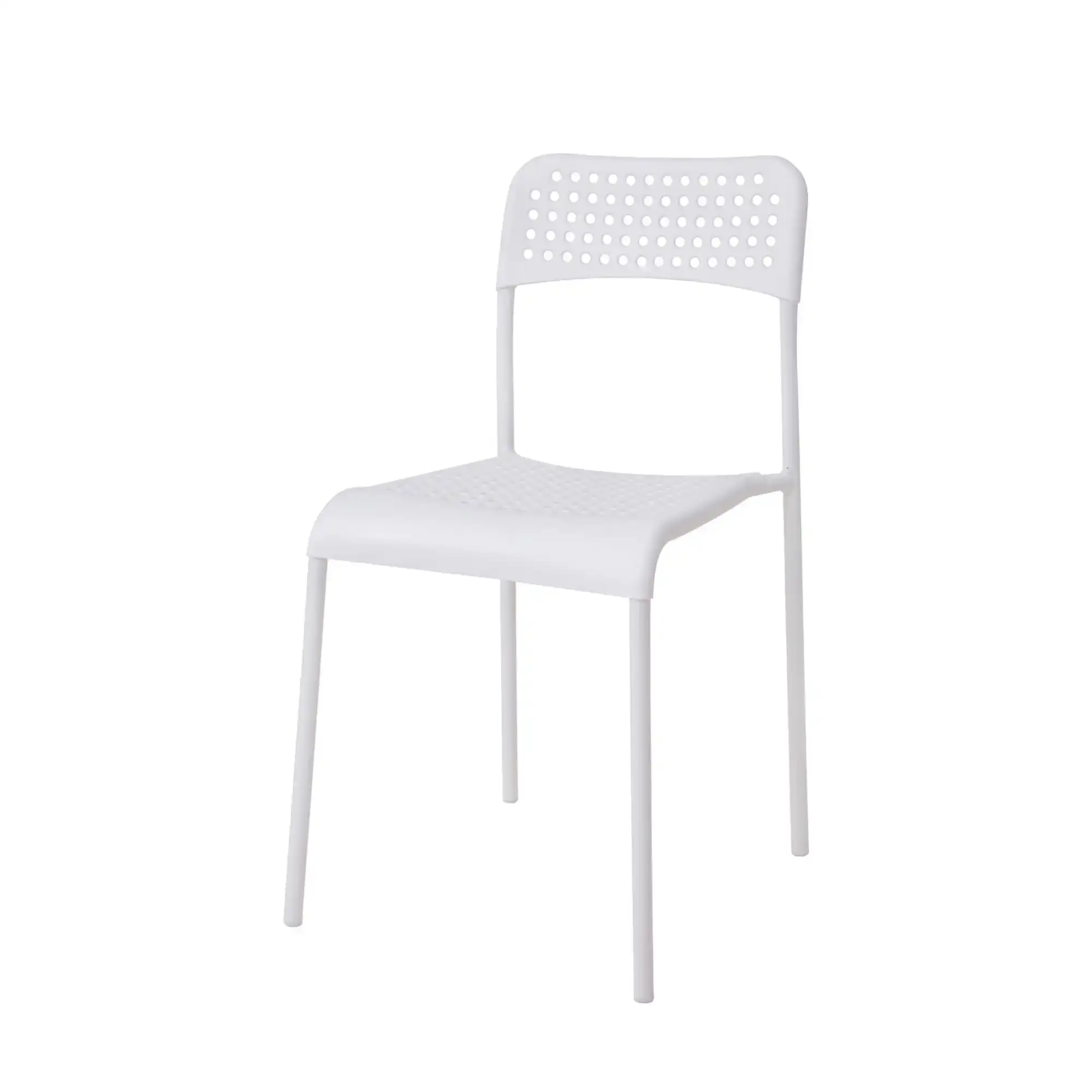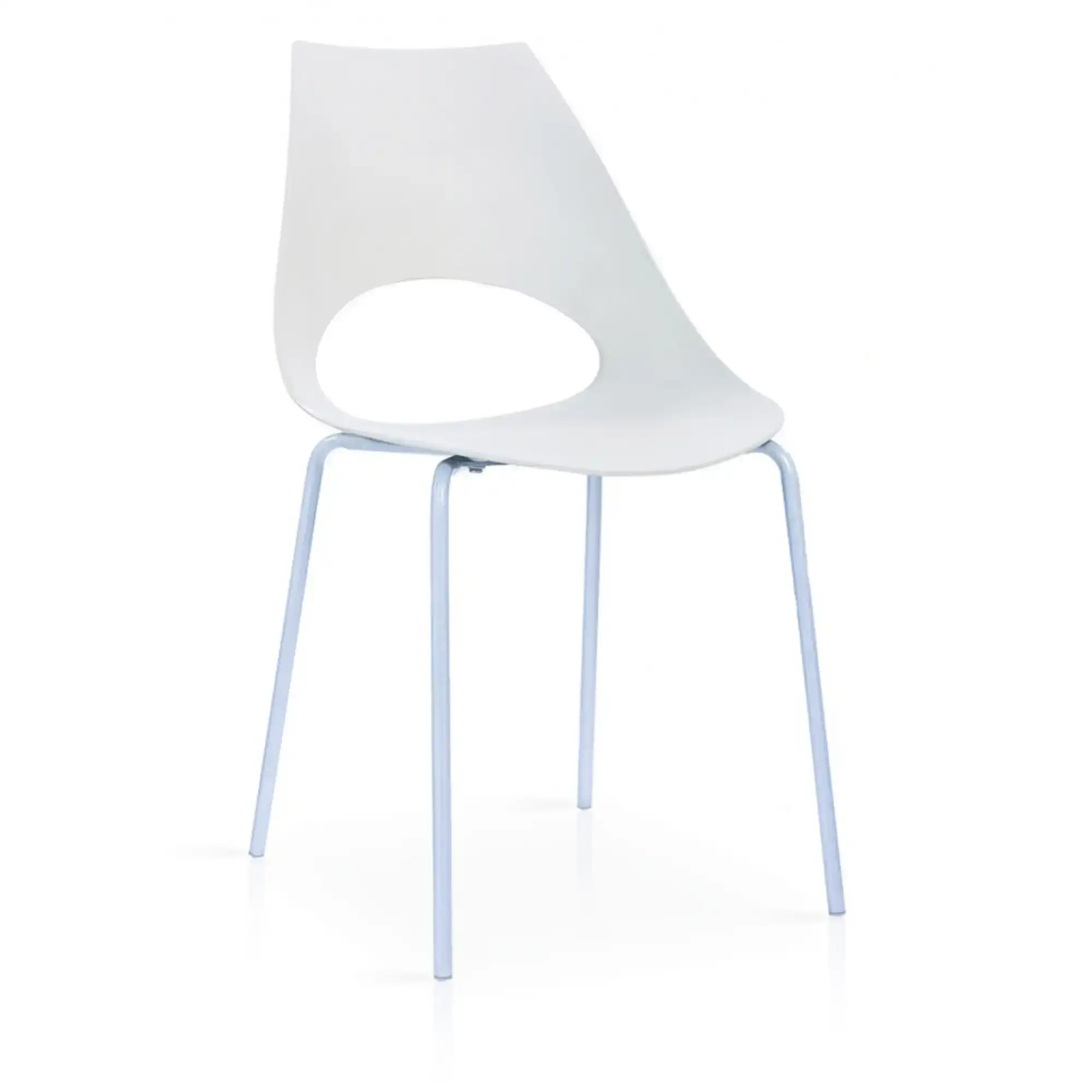 White Plastic Chairs with Chrome Metal Legs (Set of 6)
