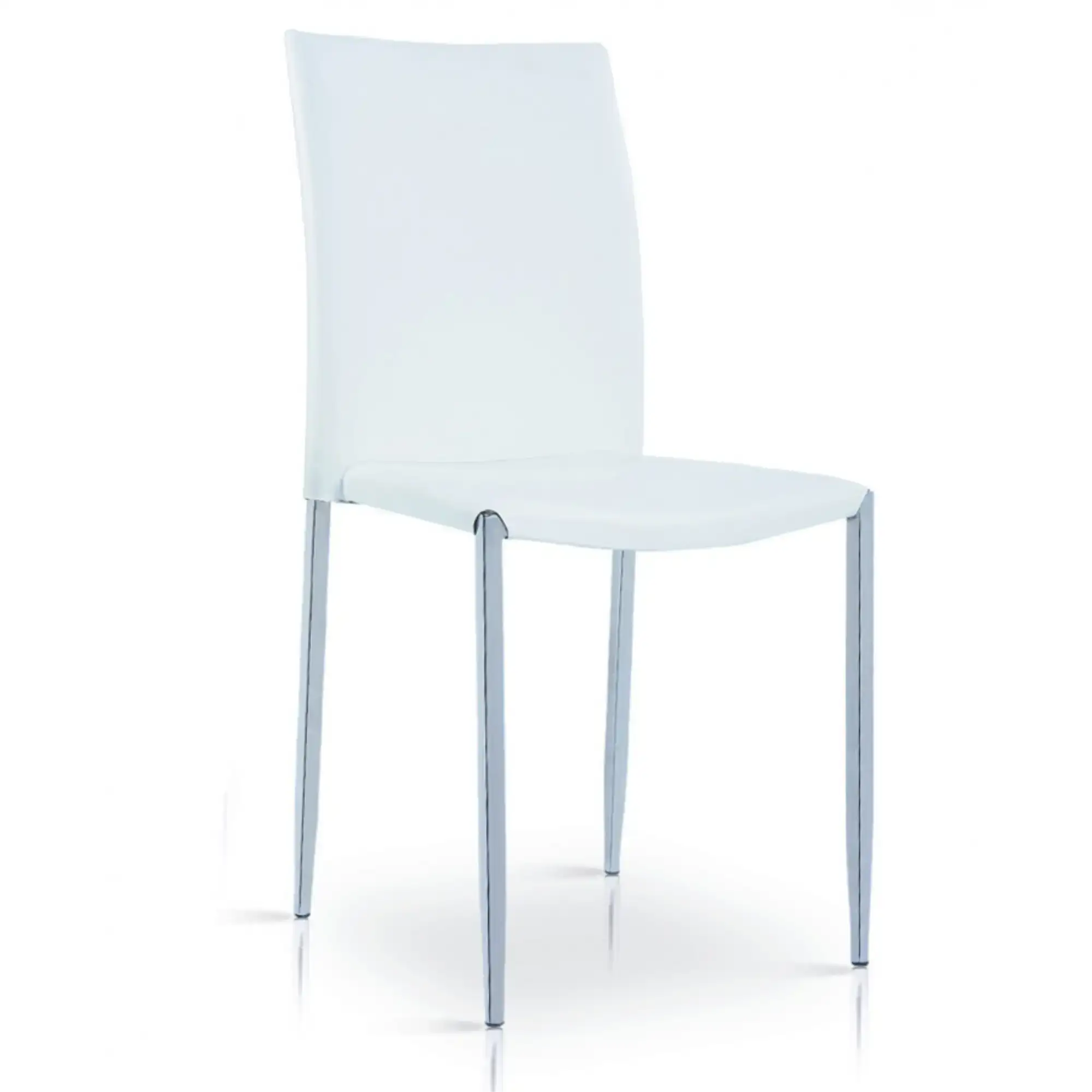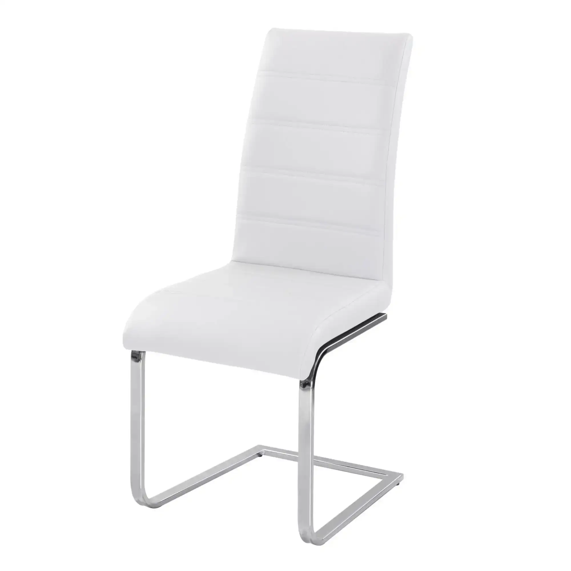 White PU Dining Chairs with Chrome Legs – Set of 4
