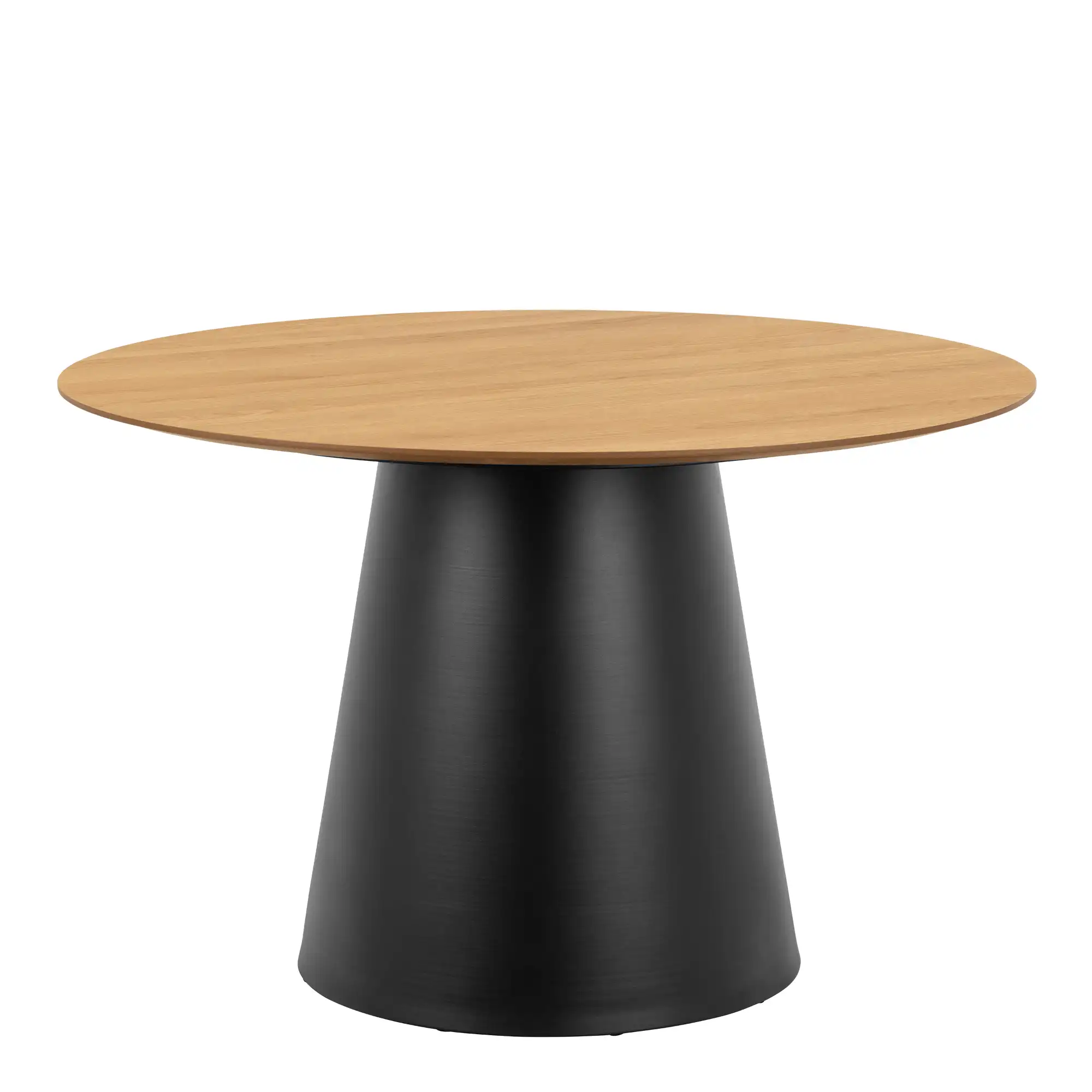 Round Dining Table with Brown Marble Melamine Top and Black Legs