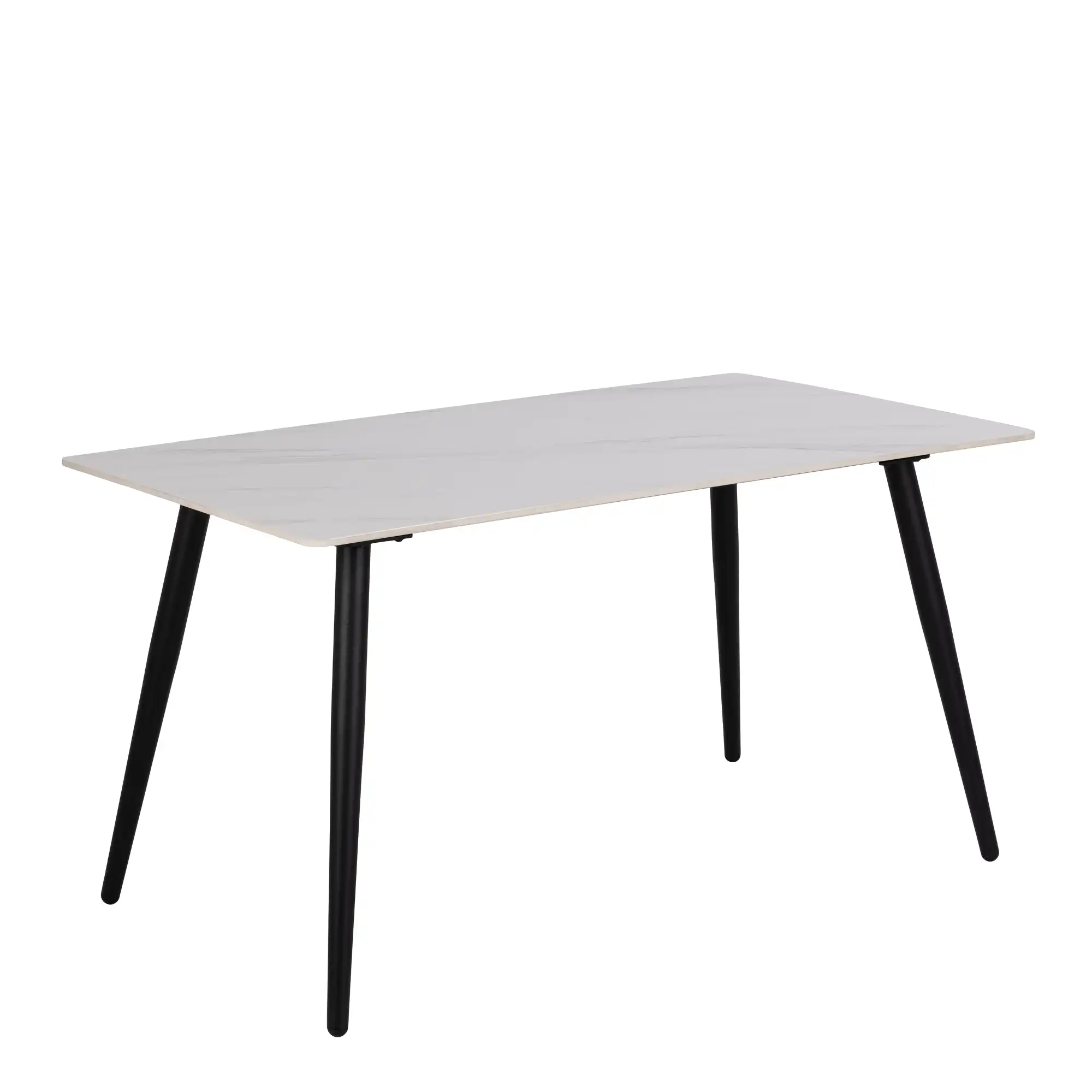 Stone Effect Glass Dining Table with Black Metal Legs