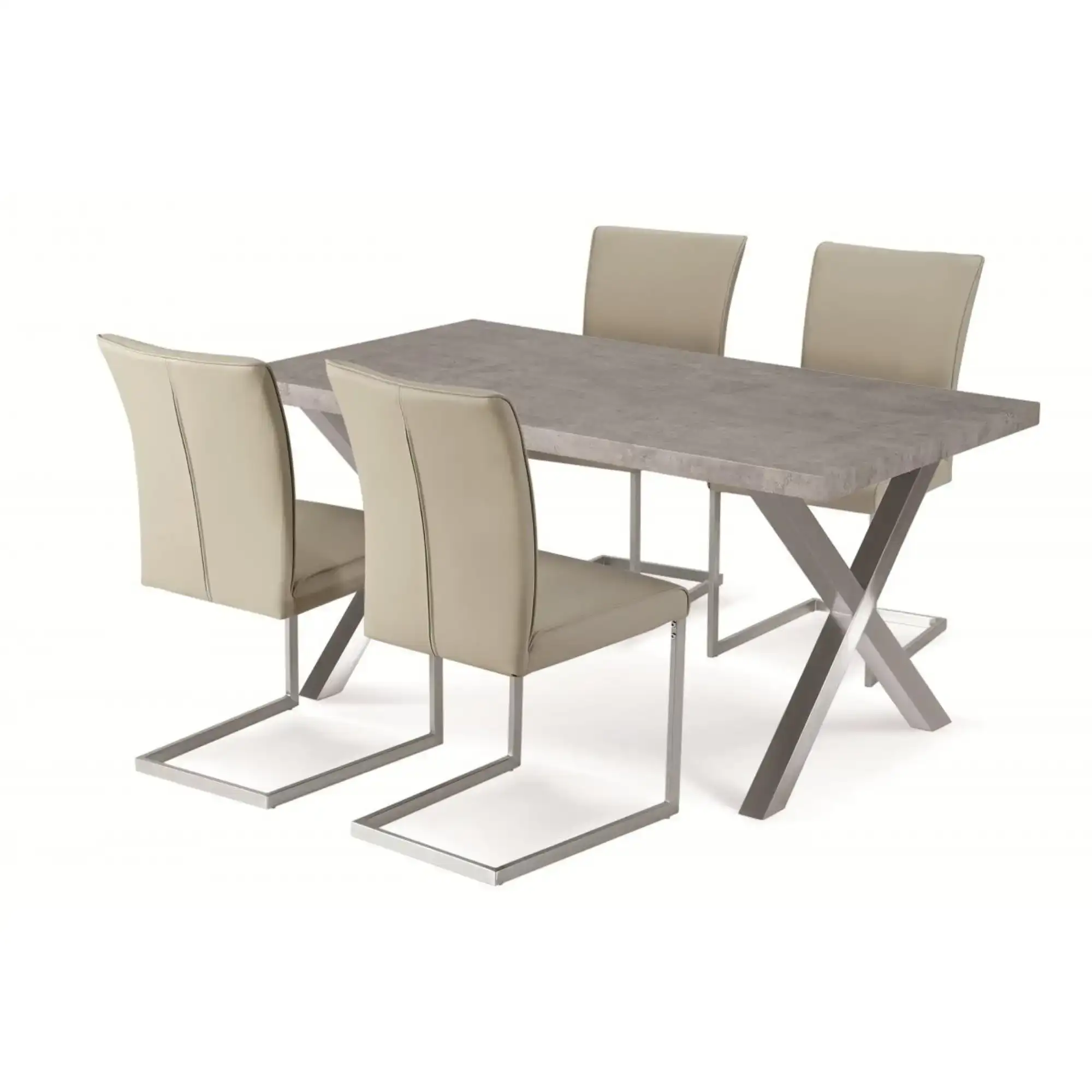 Stone Effect Dining Table with Brushed Stainless Steel Base