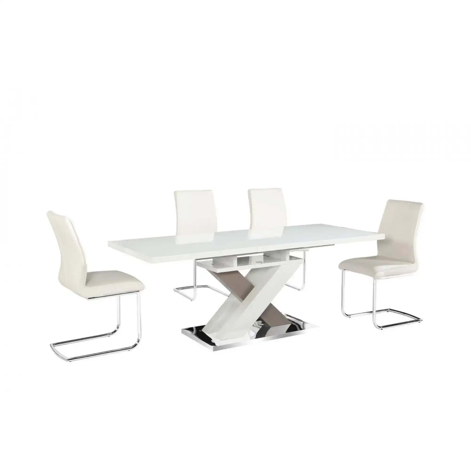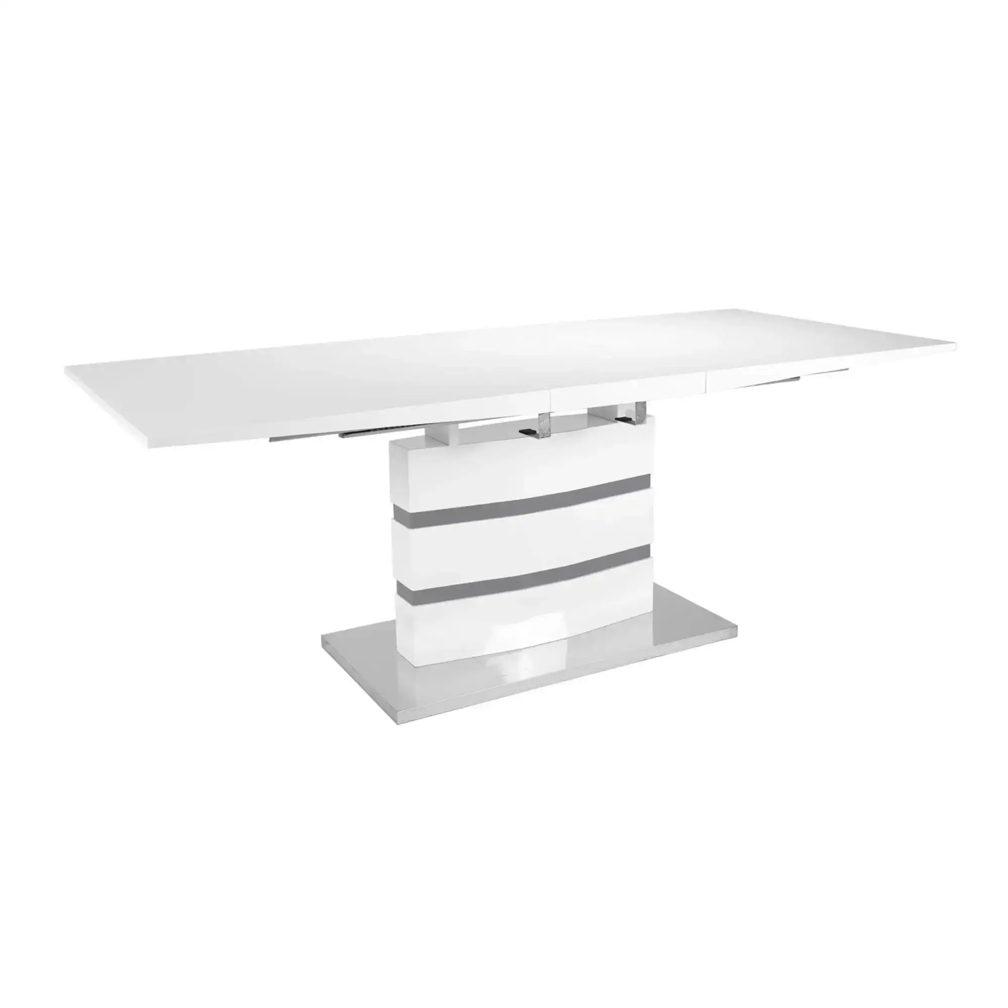 White and Grey High Gloss Extending Dining Table