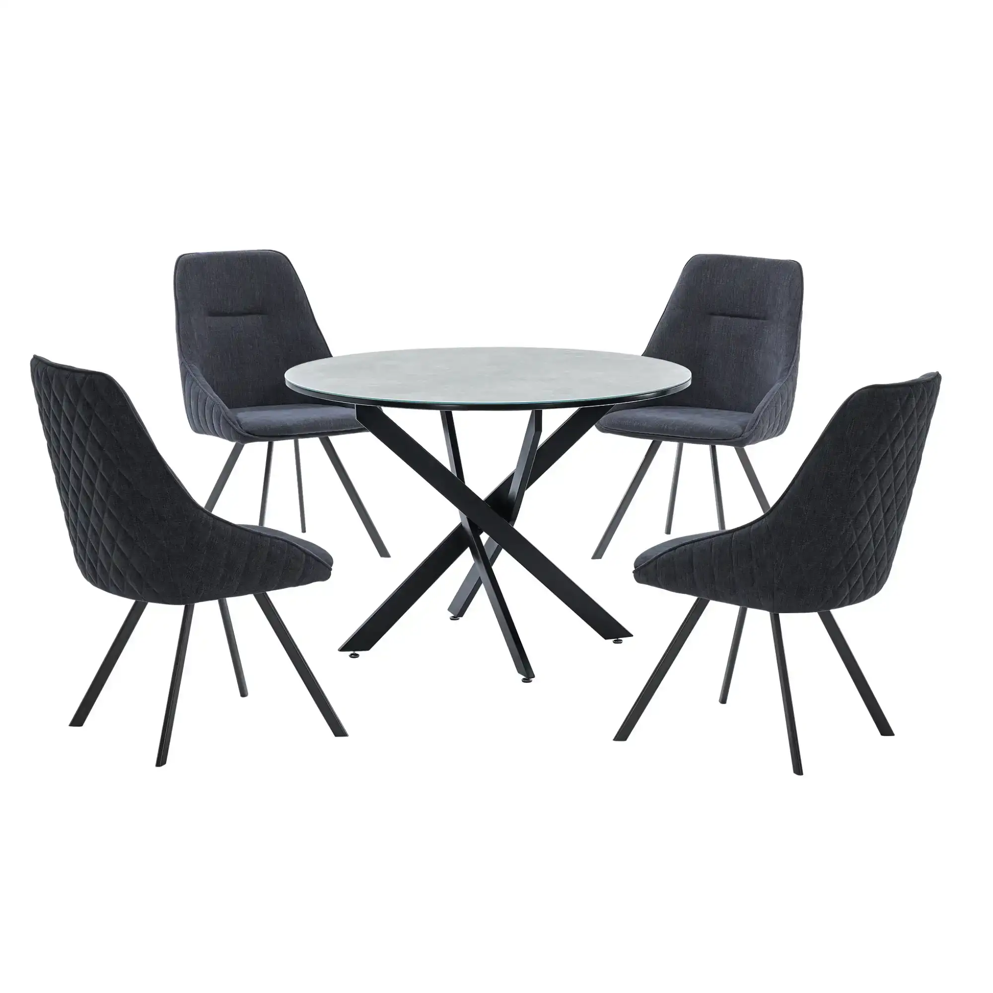 Amble Round Dining Table with Black Marble Melamine Top & Black Legs