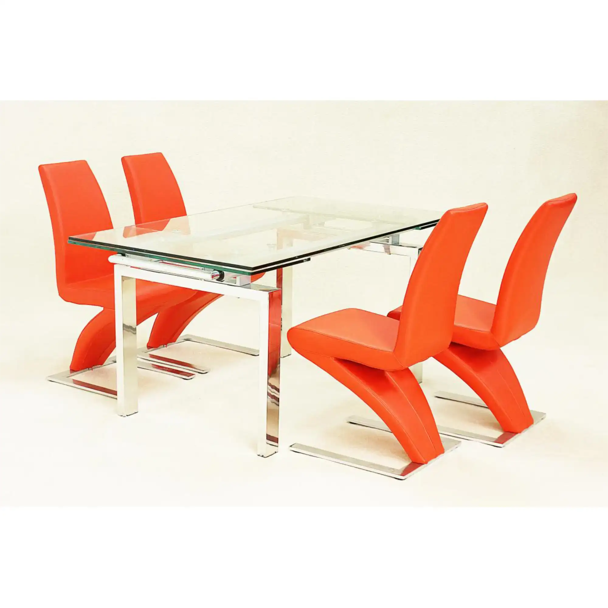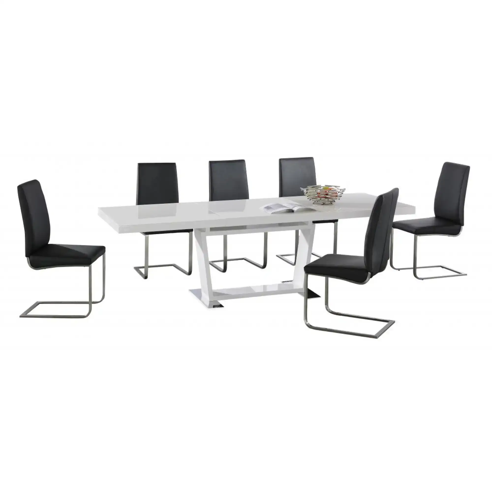 High Gloss Extendable Dining Table with Stainless Steel Base