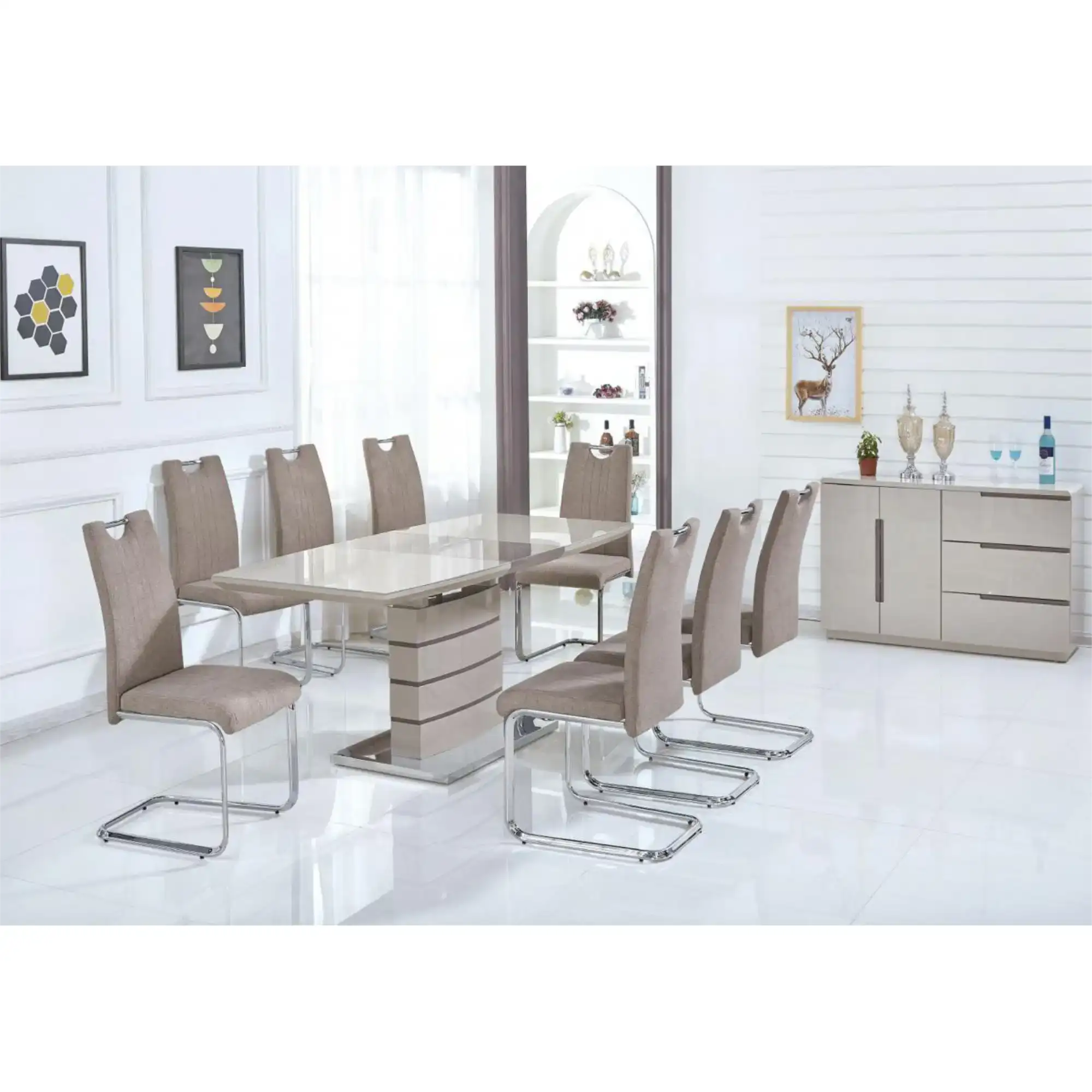 High Gloss Dining Table in Light Grey and Chrome