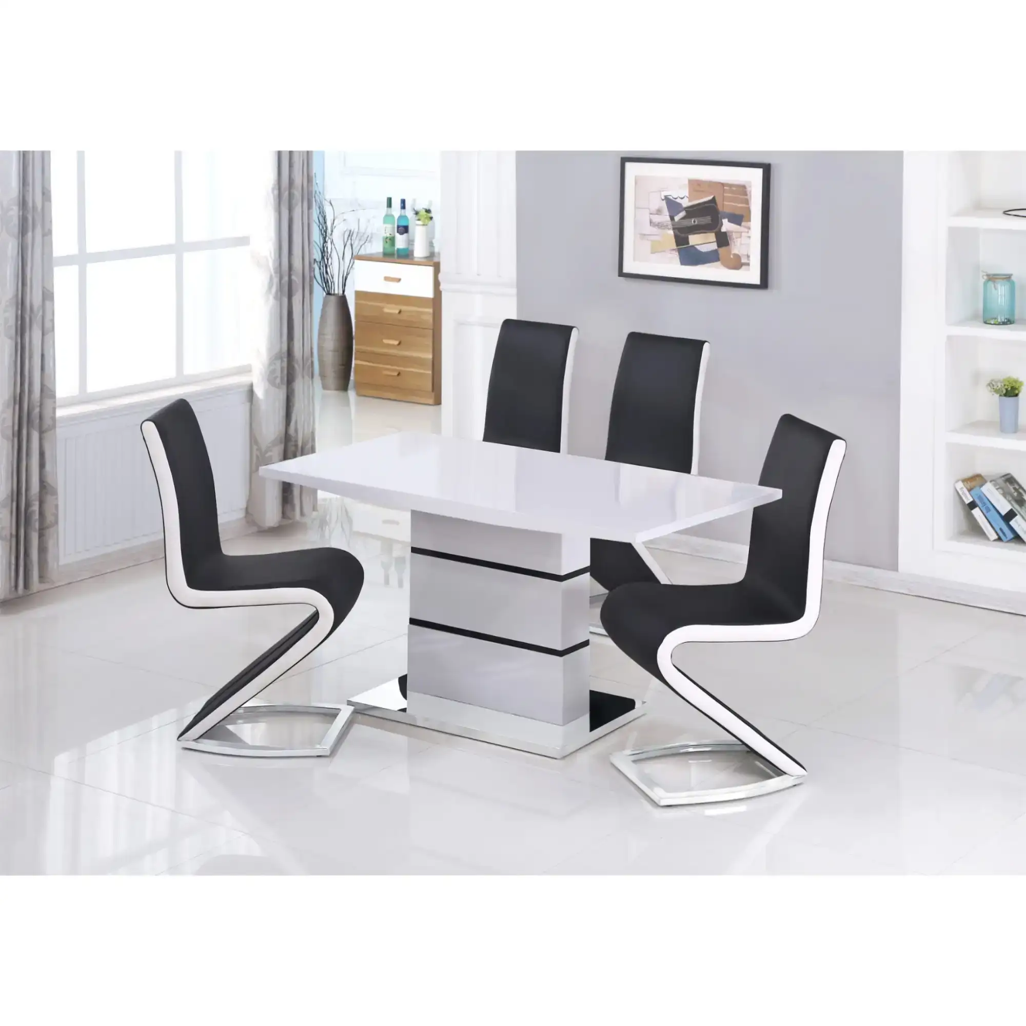 High Gloss Dining Table in White and Chrome