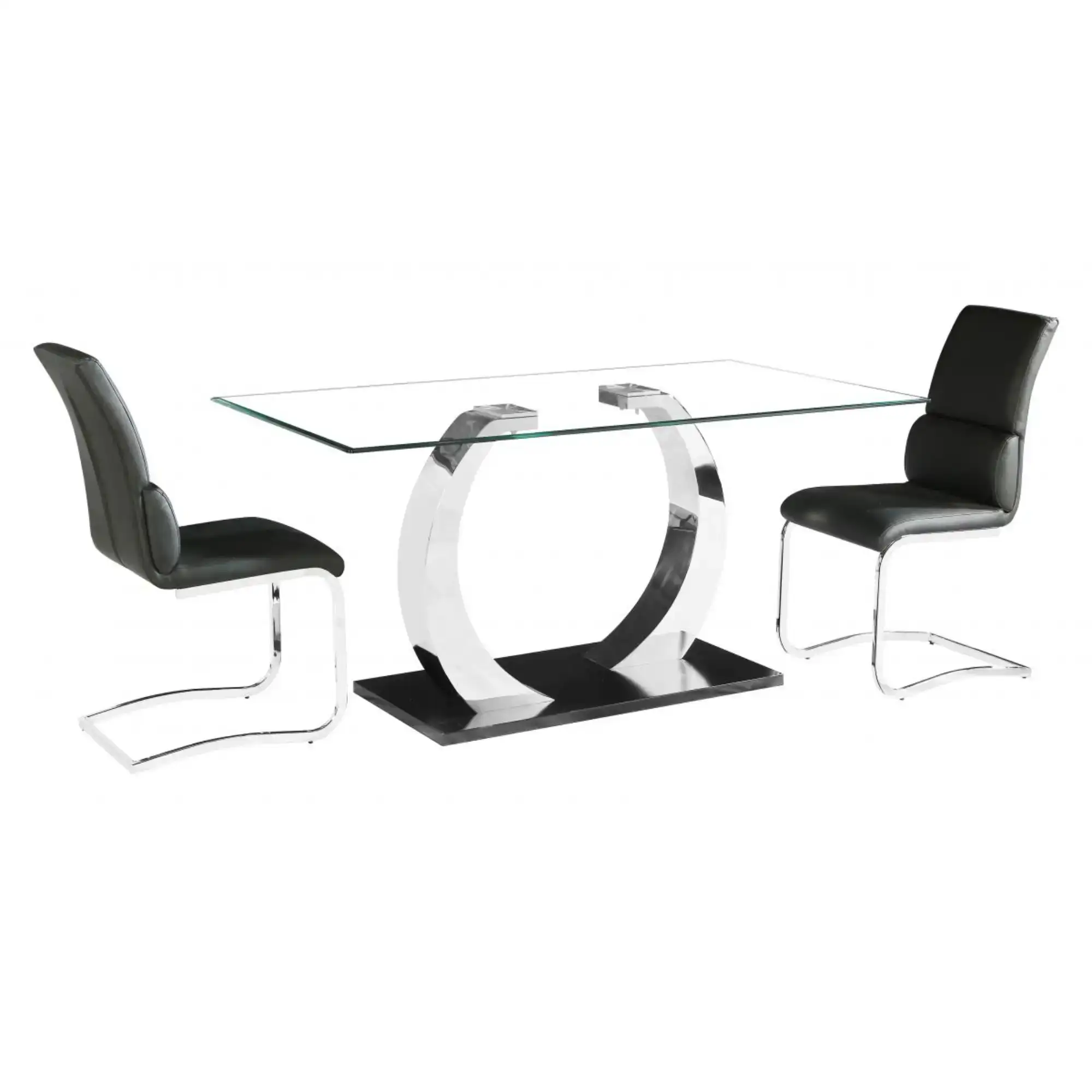 Glass Dining Table with Stainless Steel Base