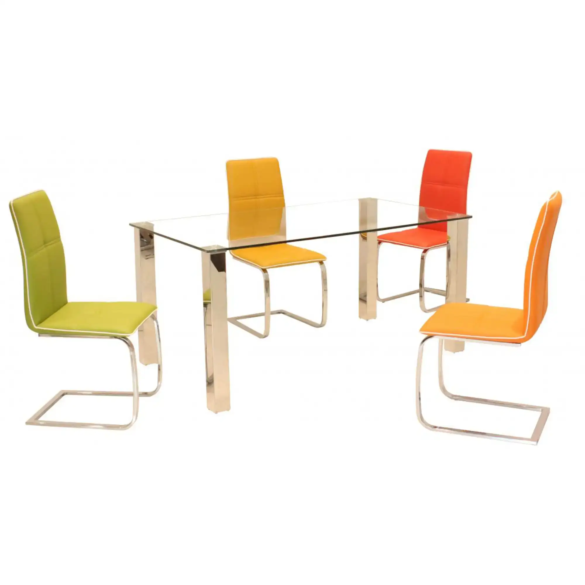 Glass Dining Table with Stainless Steel Legs