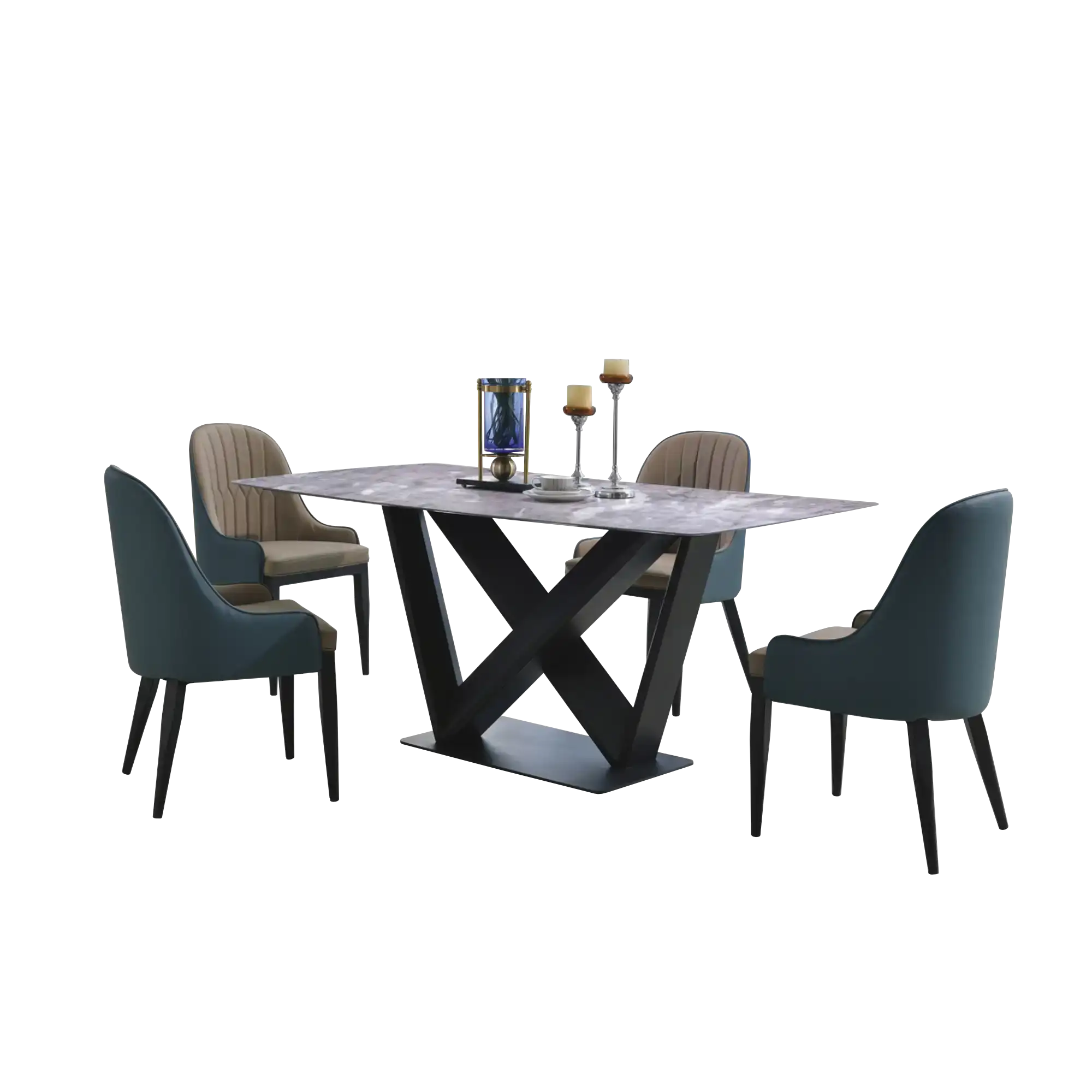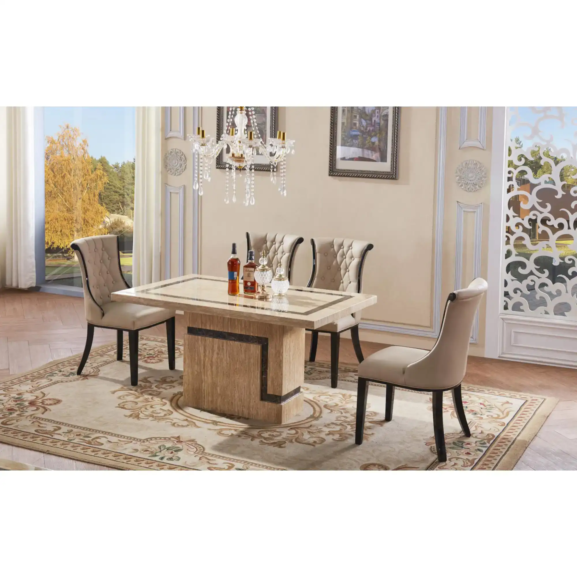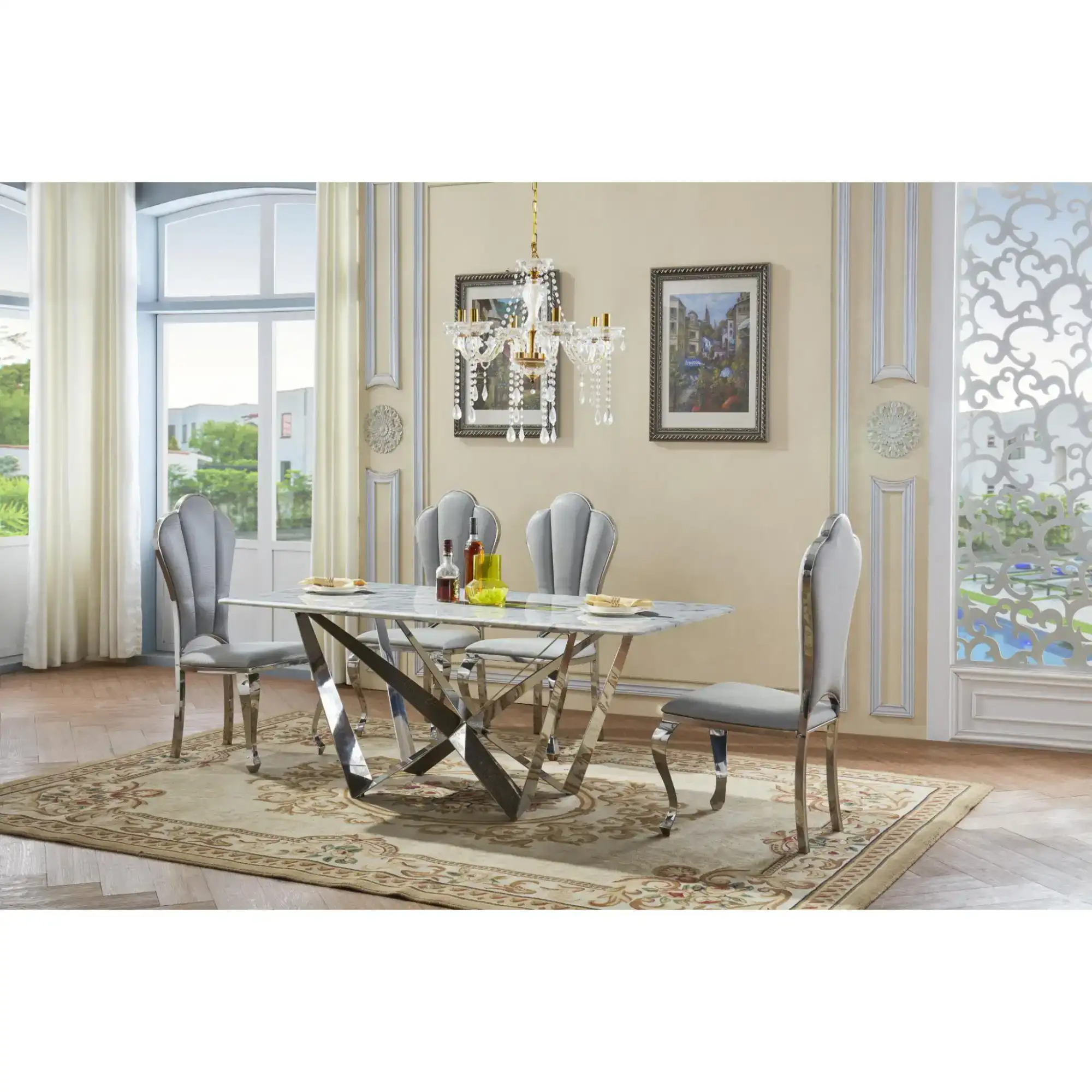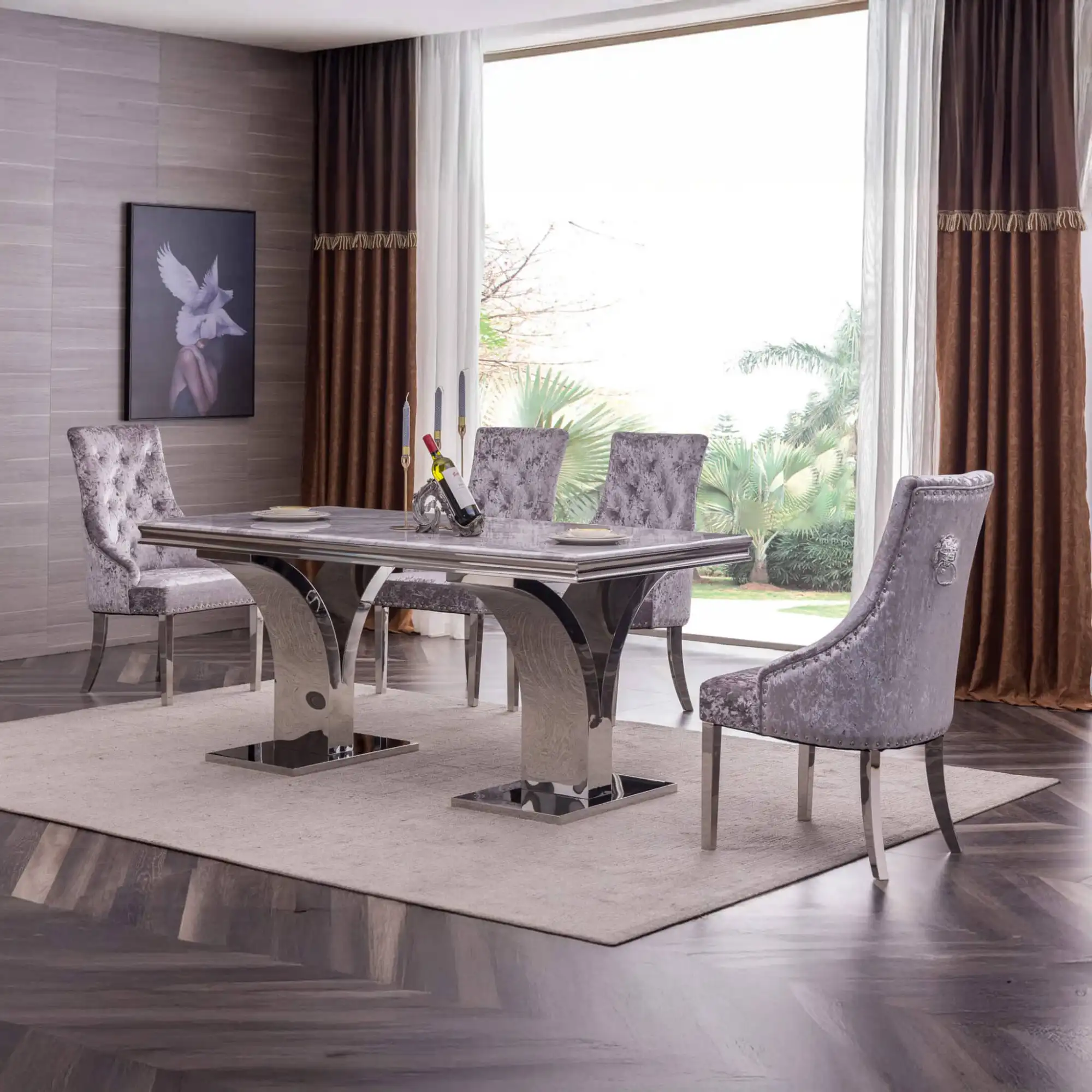 Marble Dining Table with Silver and Gold Stainless Steel Base
