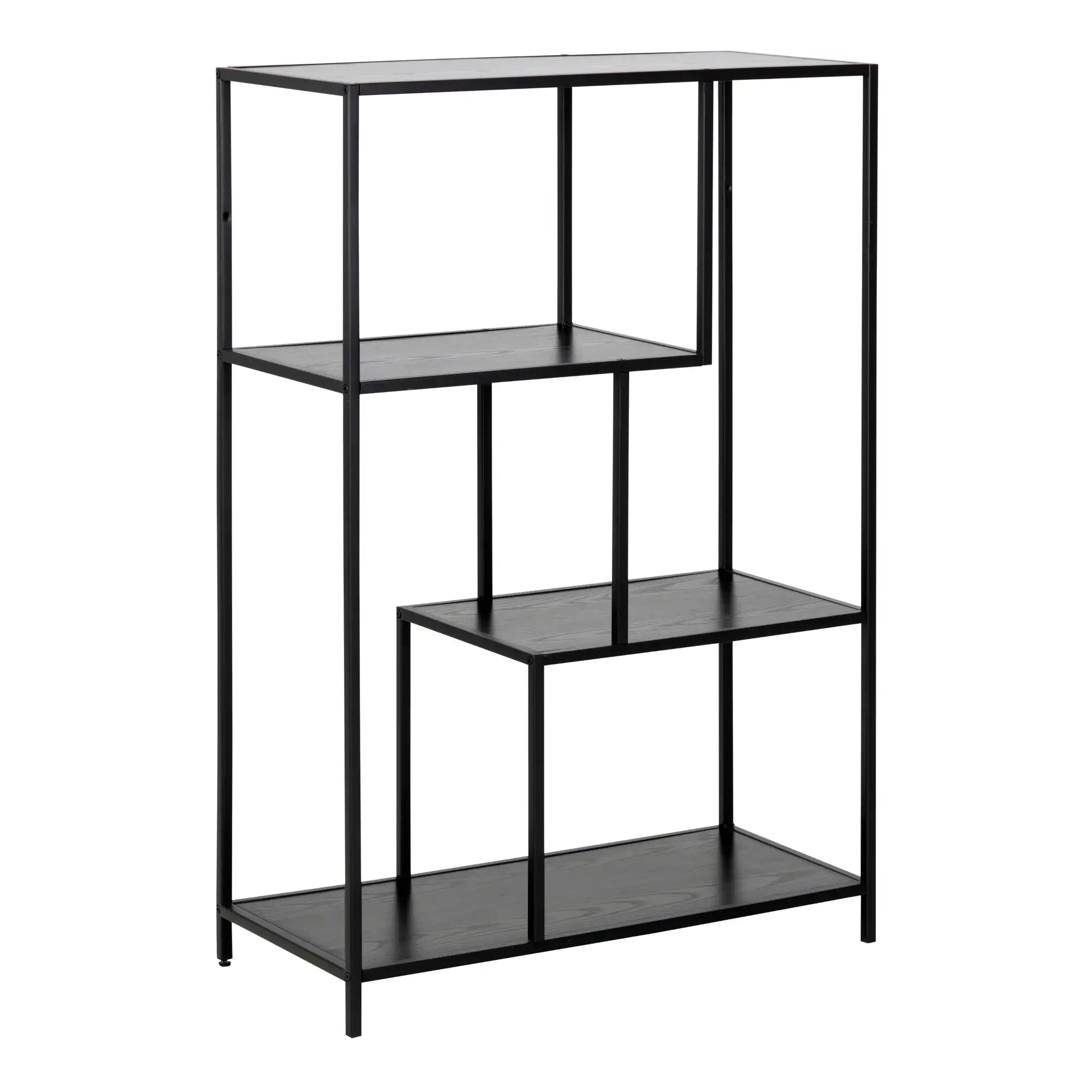 Seaford Black Metal Asymmetrical Bookcase with 3 Black Shelves