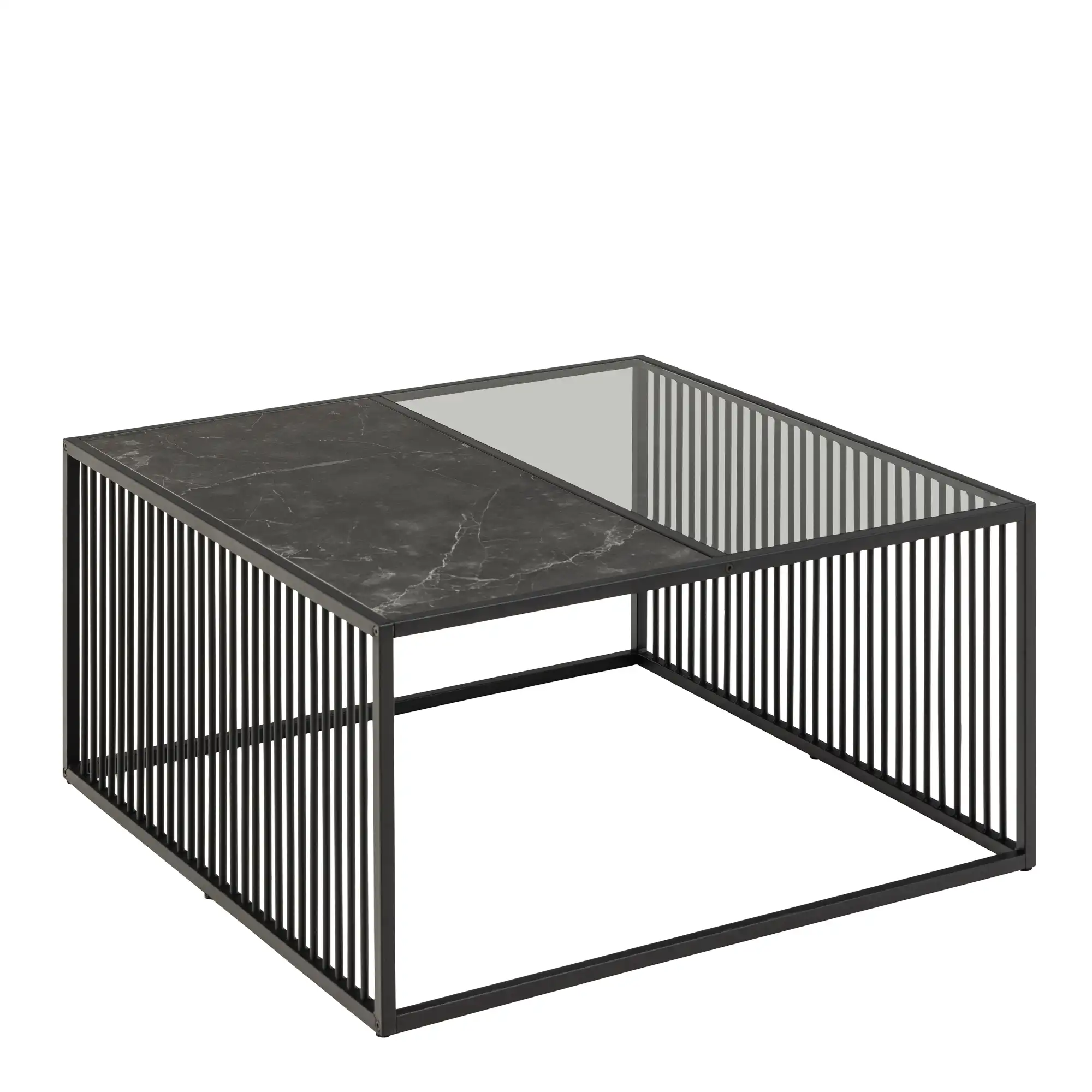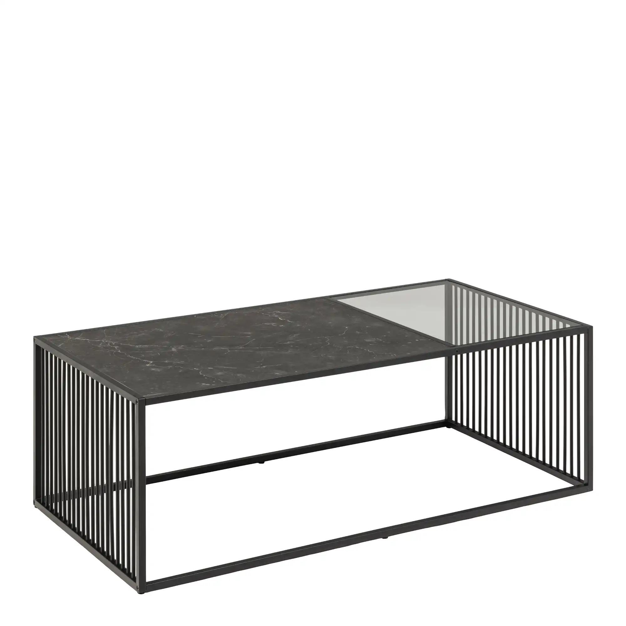 Spiro Coffee Table with Black Marble Melamine Top & Black Legs