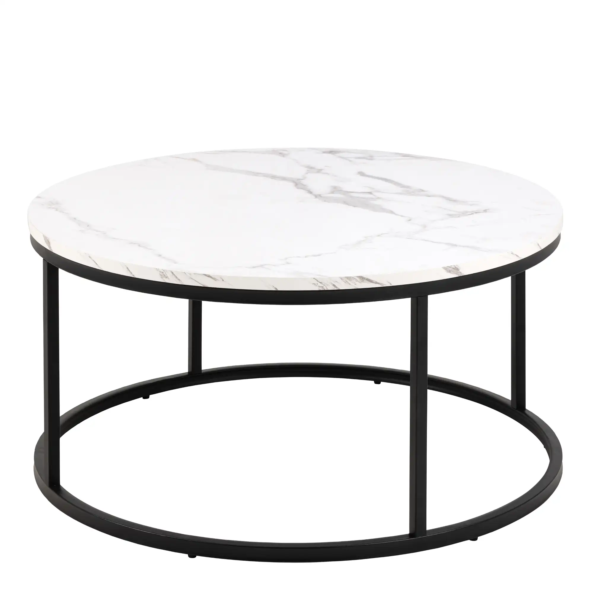 Spiro Coffee Table Set with White Marble Melamine Top & Black Legs