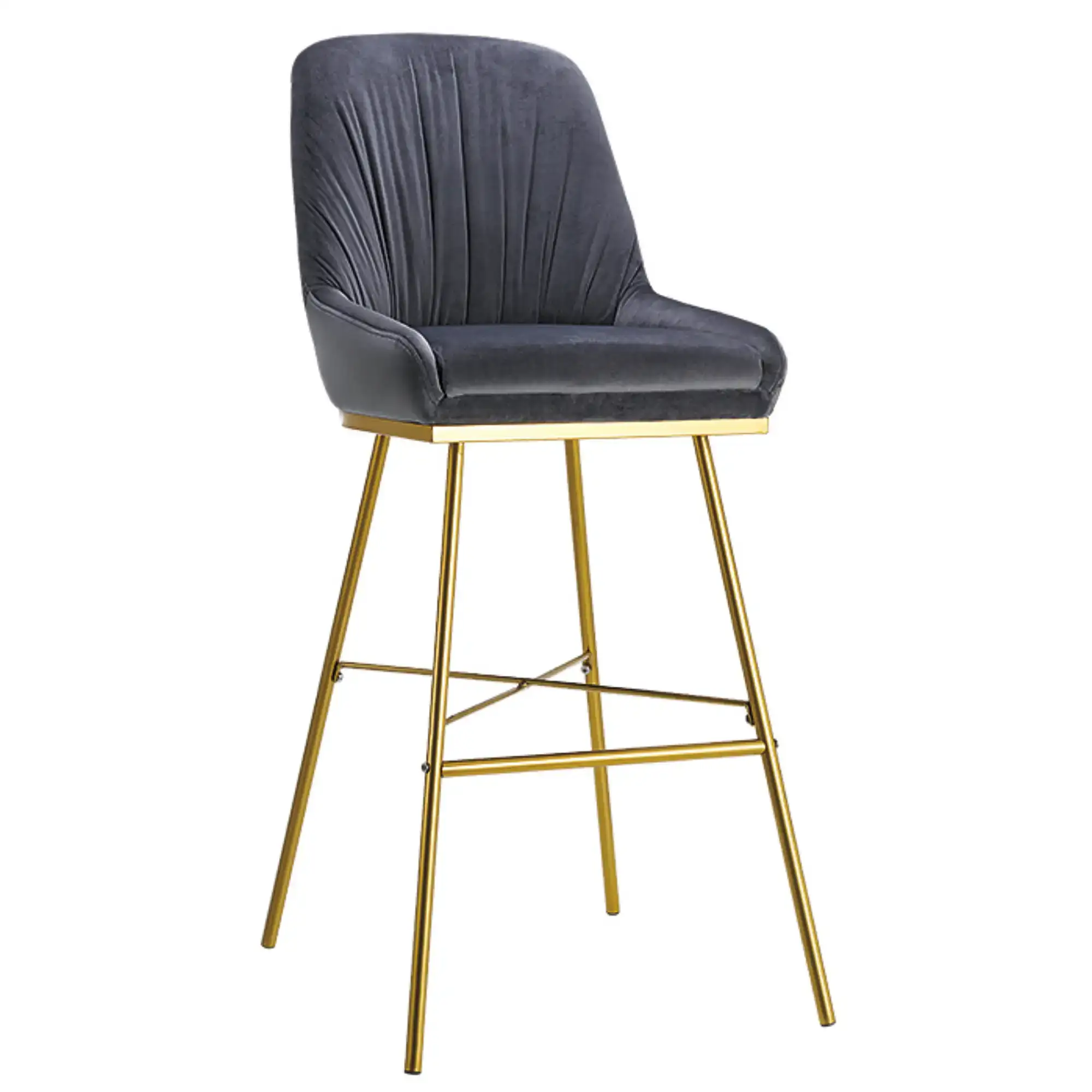 Middleton Velvet Bar Chair Grey with Gold Metal Legs