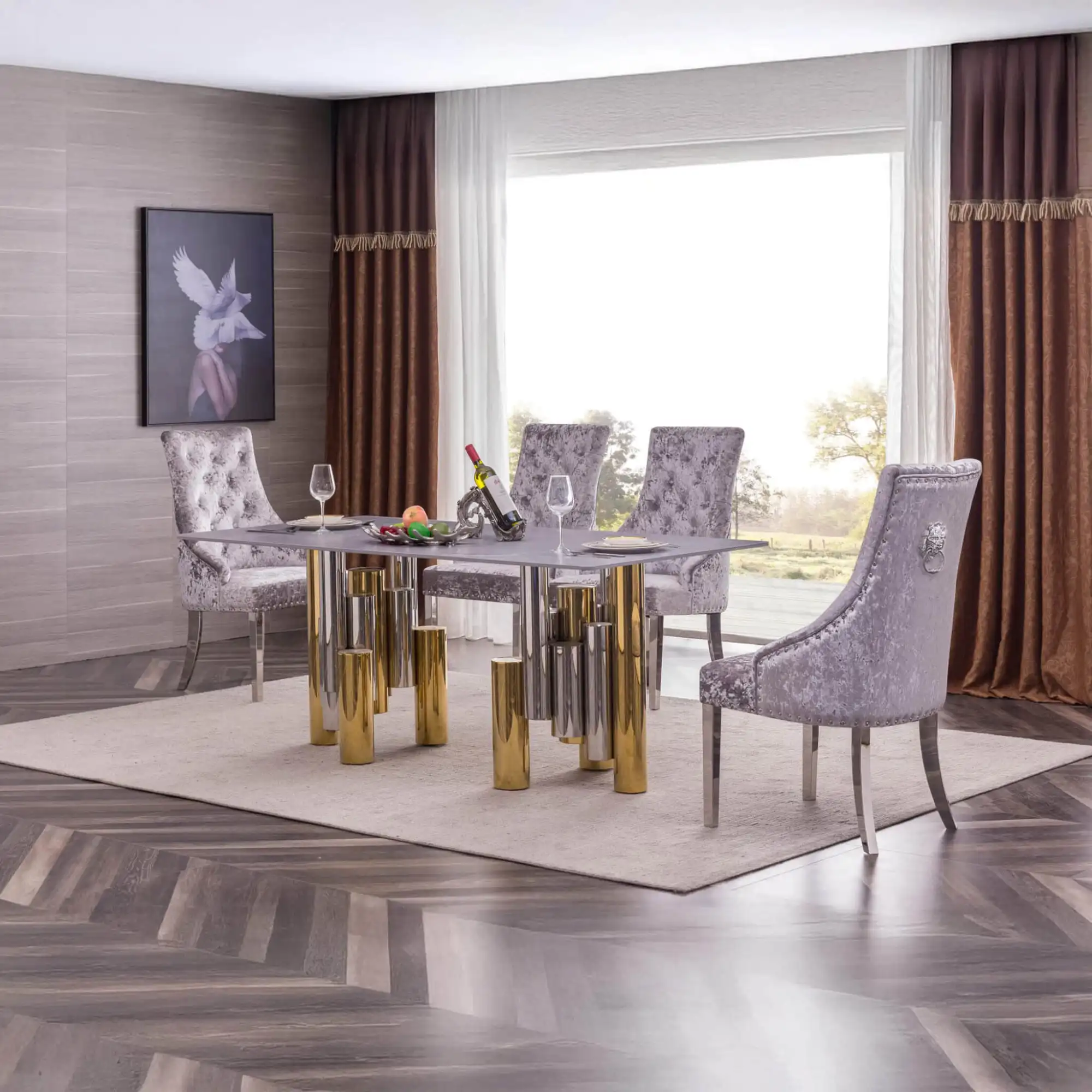 Algarve Marble Dining Table with Stainless Steel Base Silver & Gold