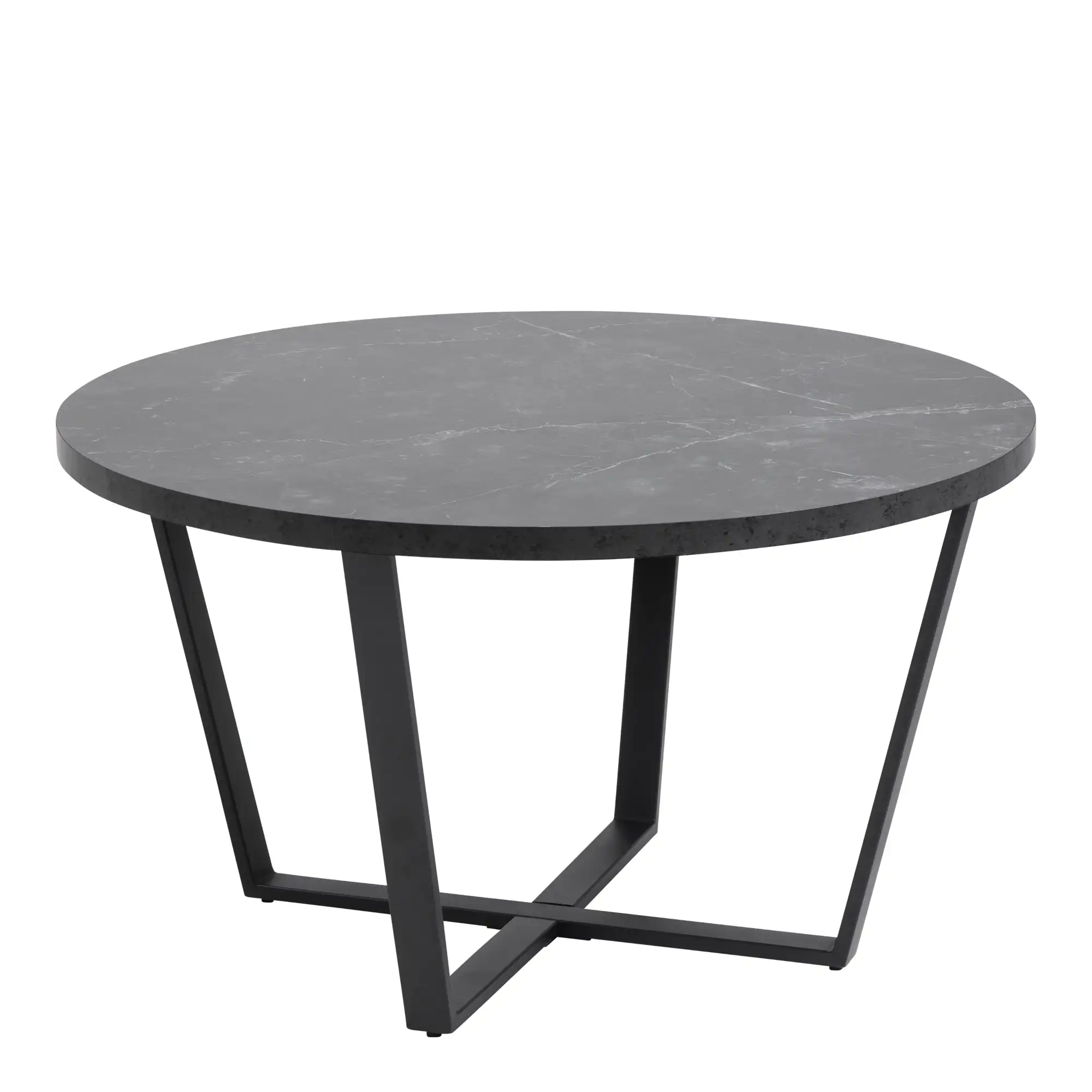 Amble Round Coffee Table with Black Marble Melamine Top & Black Legs