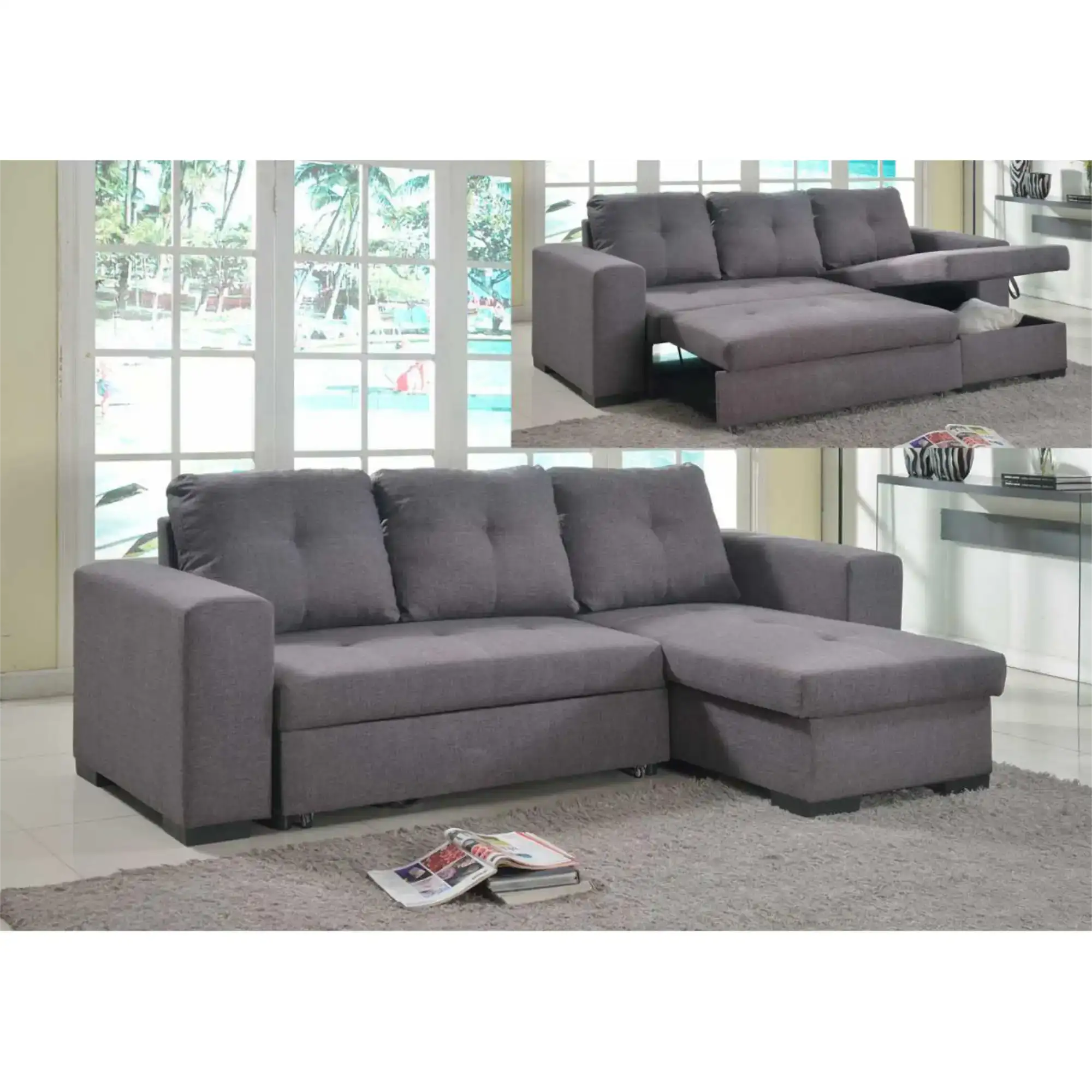 Gianni Storage Chaise Sofa Bed Linen Grey