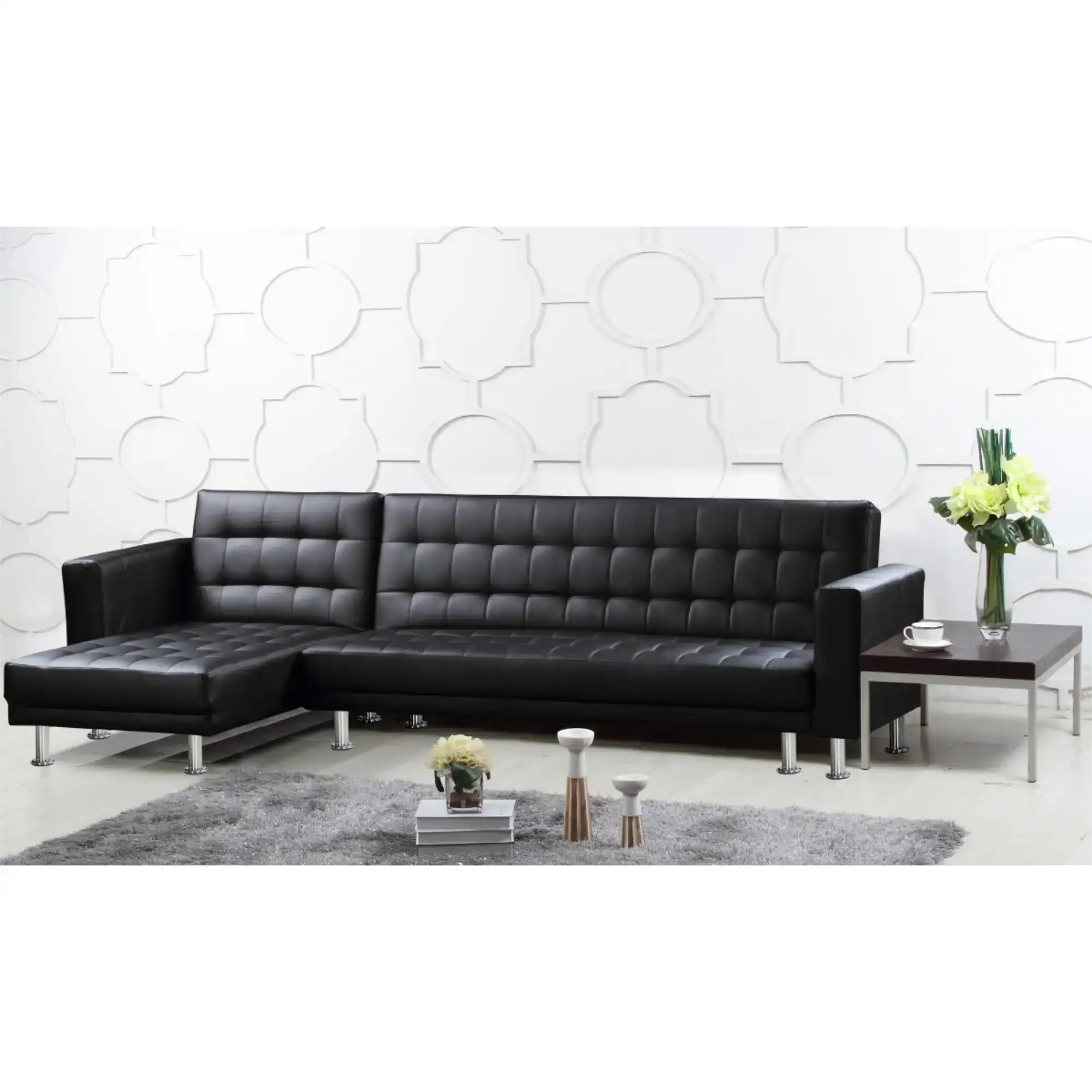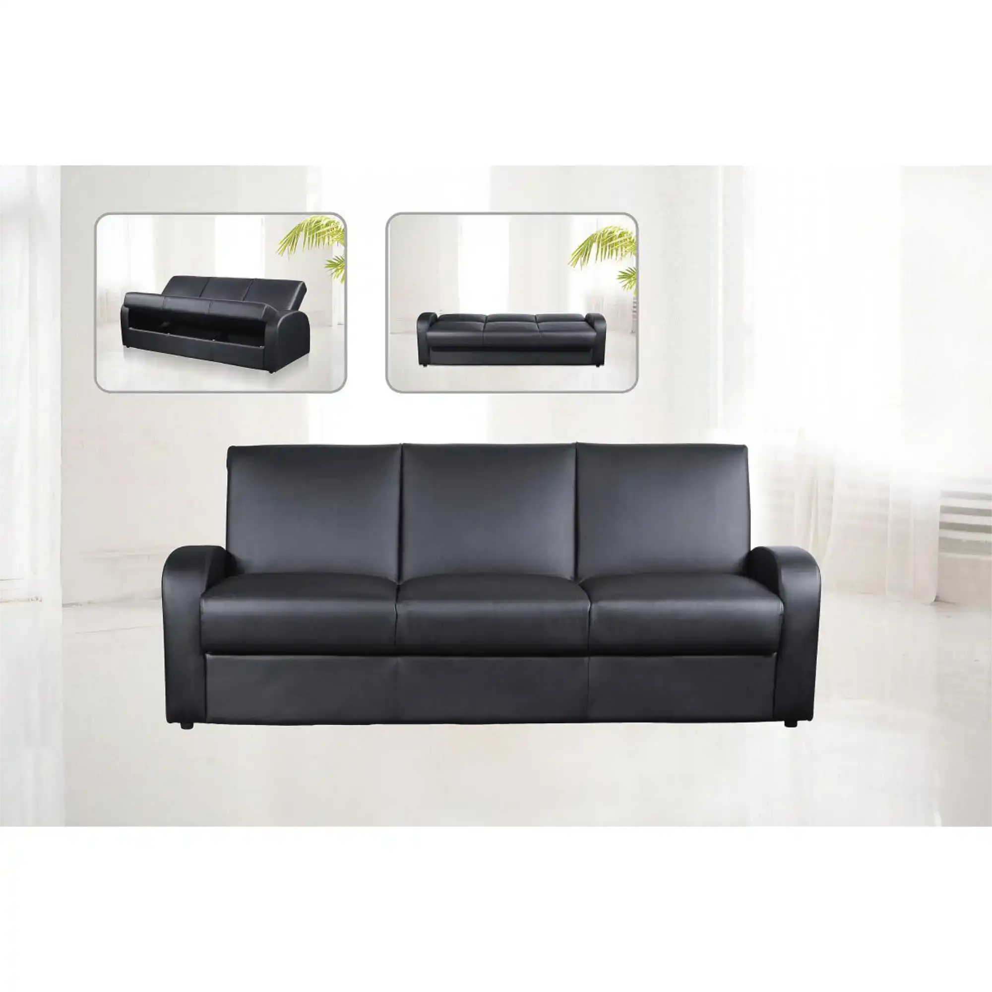 Gianni Storage Chaise Sofa Bed Bonded PU Black