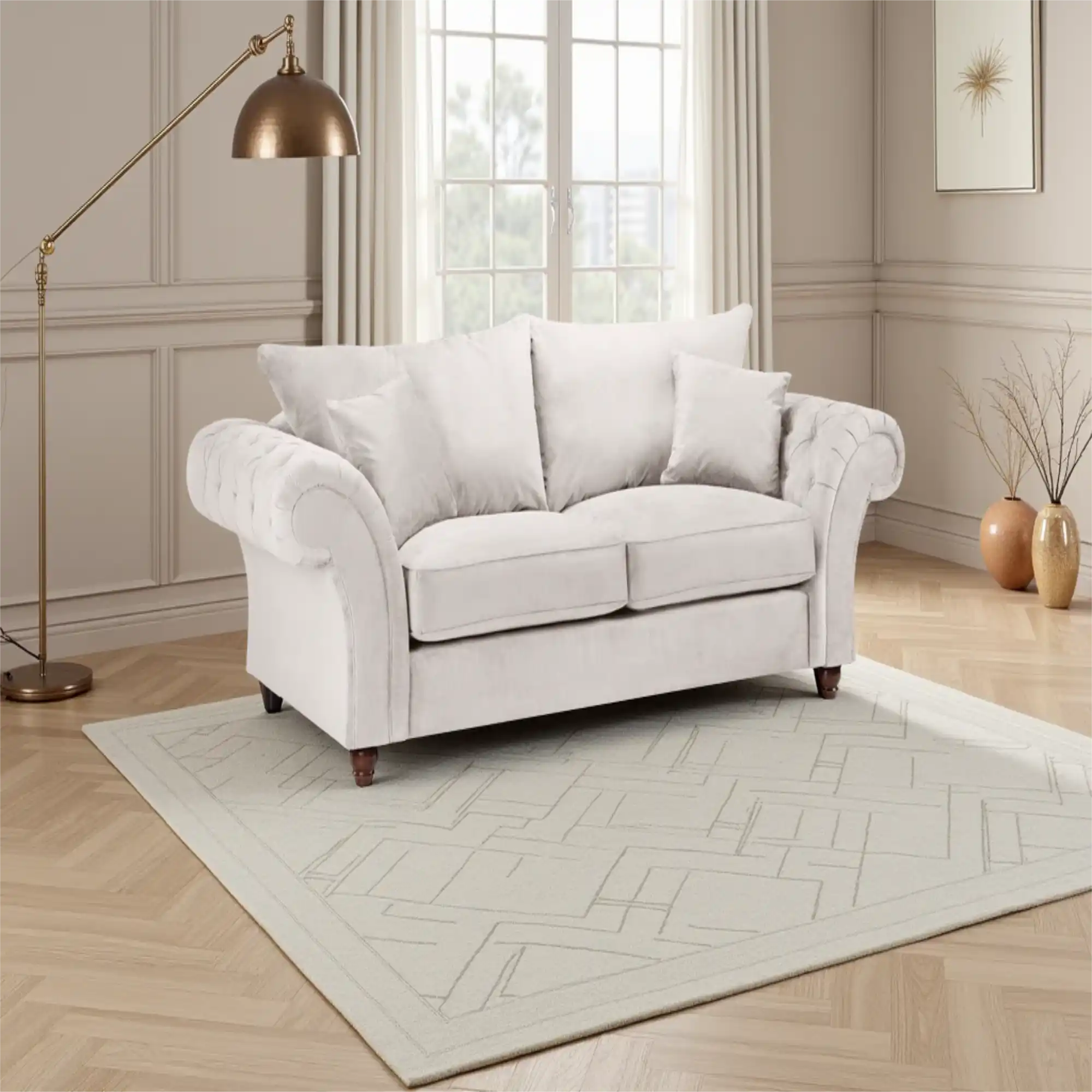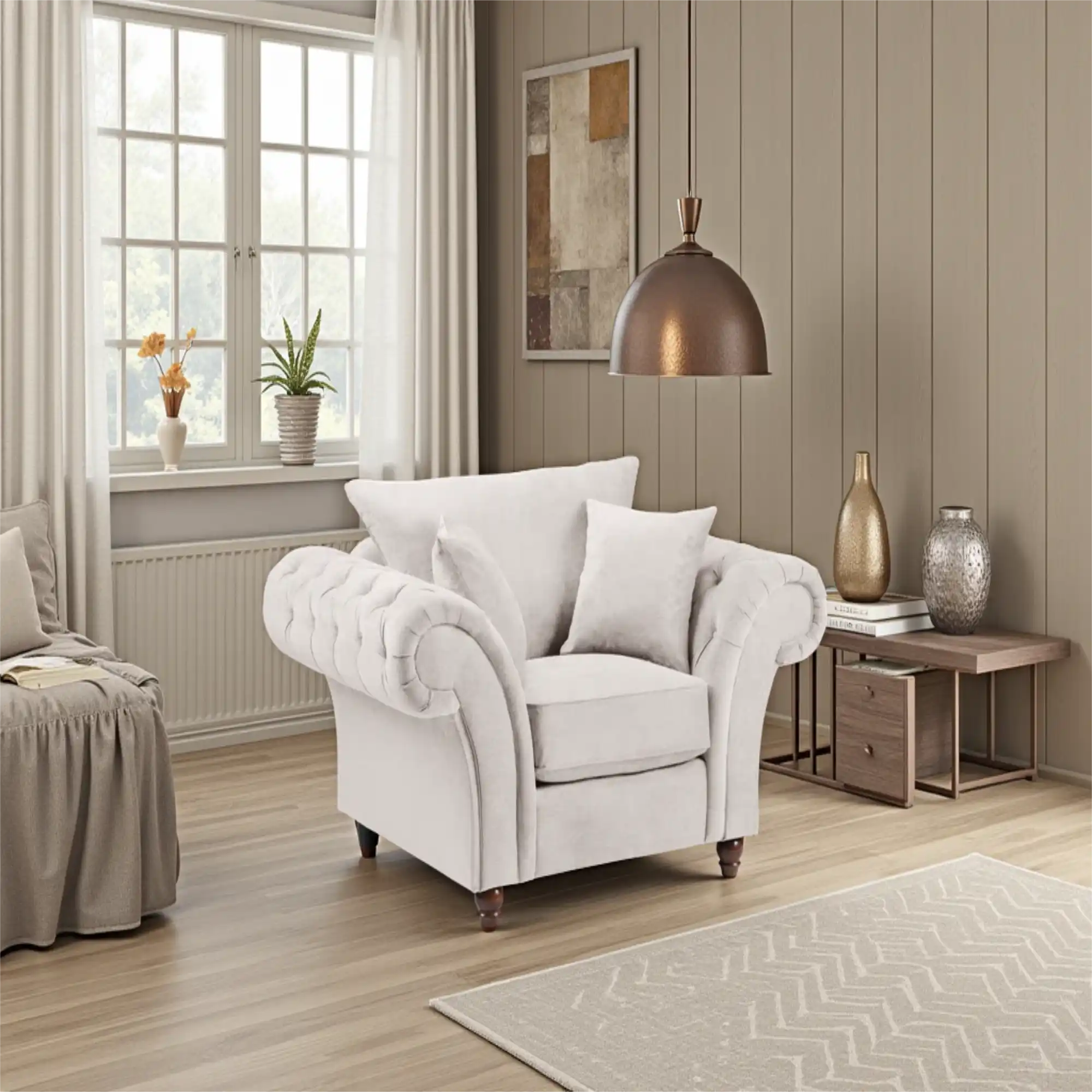 Bring opulent style and supreme comfort into your home with the Ashwin Corner Sofa. This luxurious L-shaped unit is the perfect centrepiece for any modern or traditional living room. Upholstered in a soft, premium velvet fabric in a rich Grey finish, the set exudes timeless elegance. The design is elevated by refined tape button detailing on the cushions, adding a sophisticated, handcrafted touch. Built on a sturdy, durable frame, the Ashwin offers both enduring quality and exceptional comfort, thanks to its plush, foam-filled seating and cozy scatter back cushions, providing a supportive and inviting place to relax.