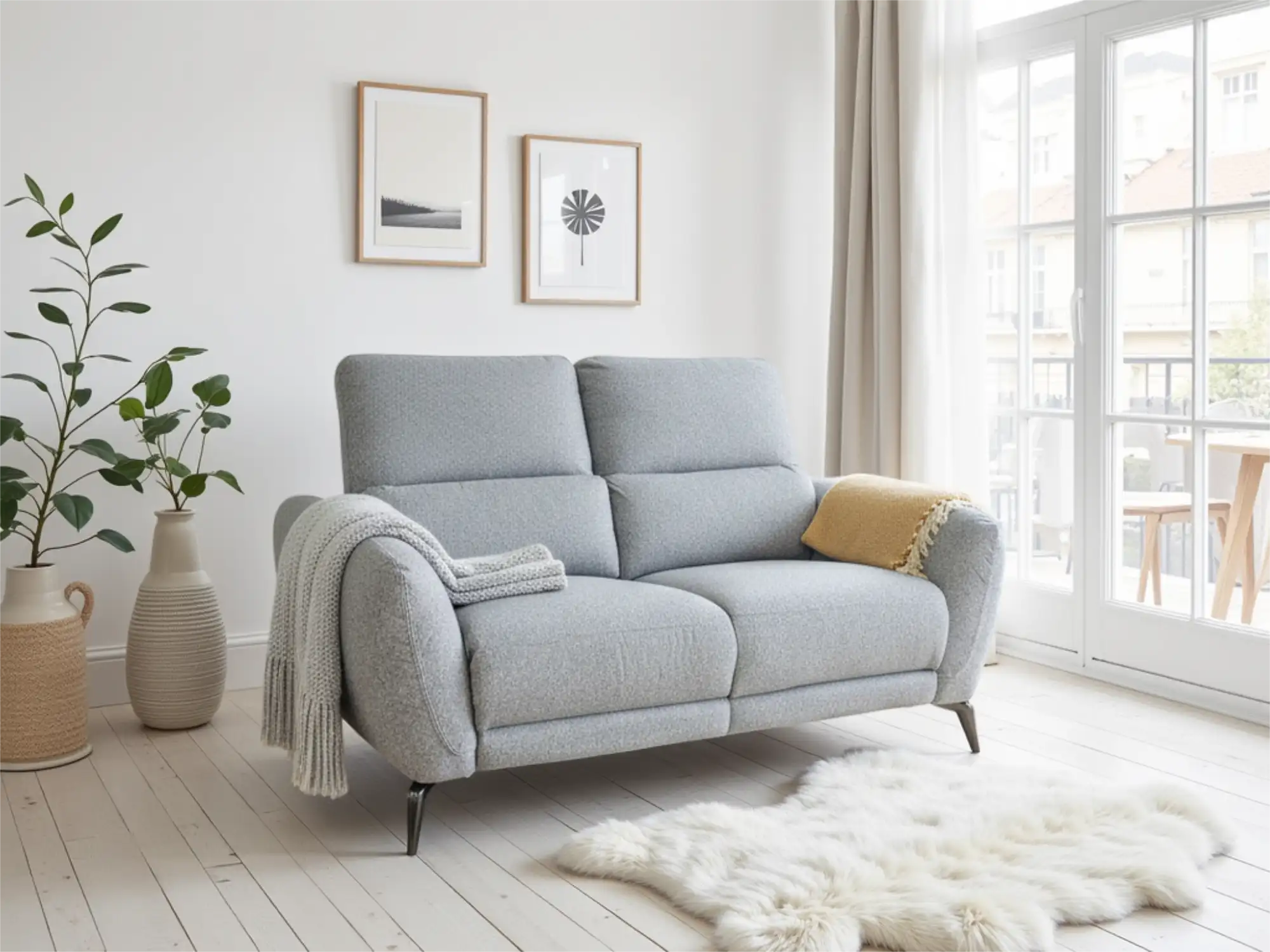 Modern 2-Seater Fabric Sofa in Grey