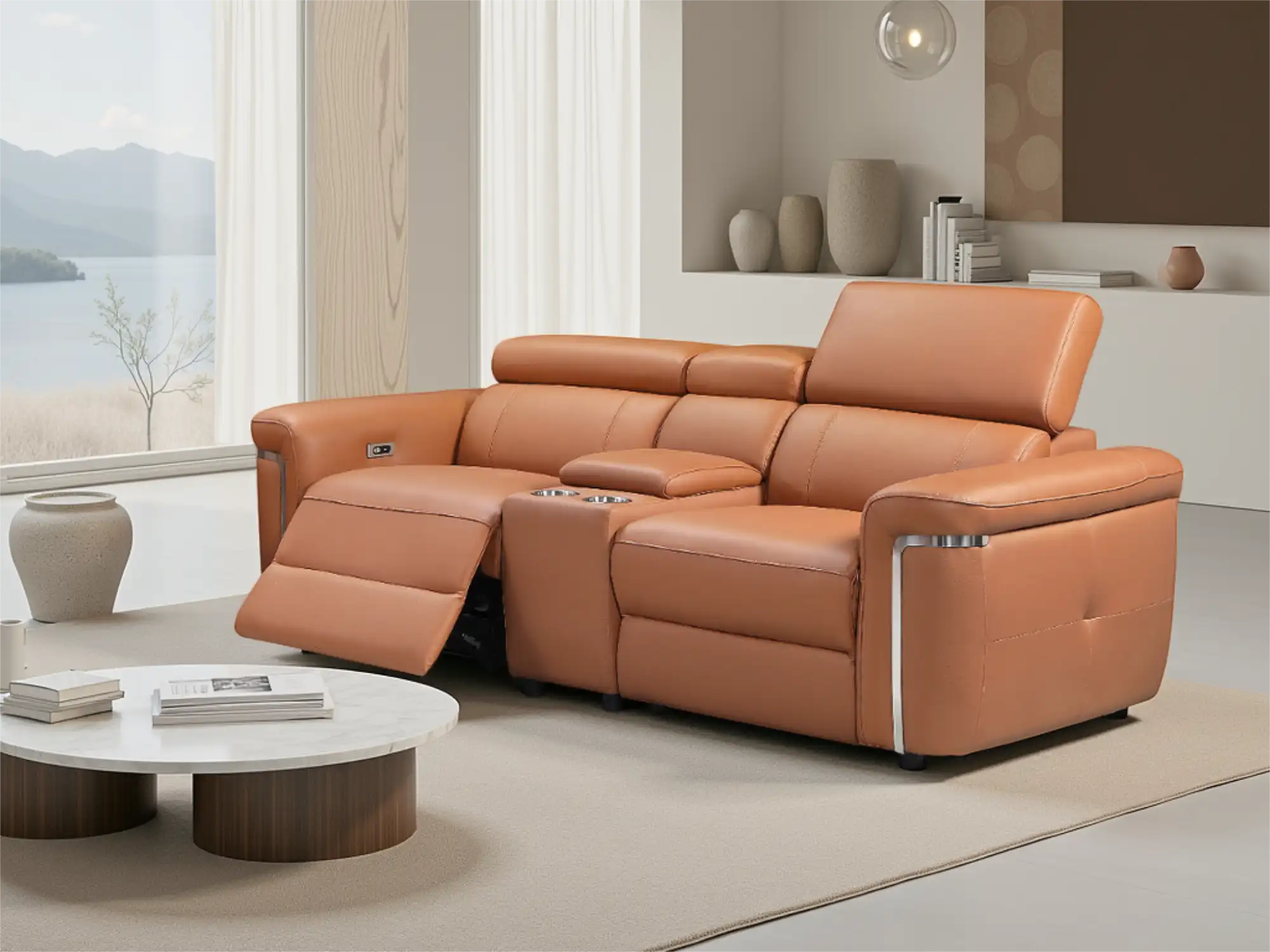 Modern 2-Seater Electric Reclining Sofa in Tan