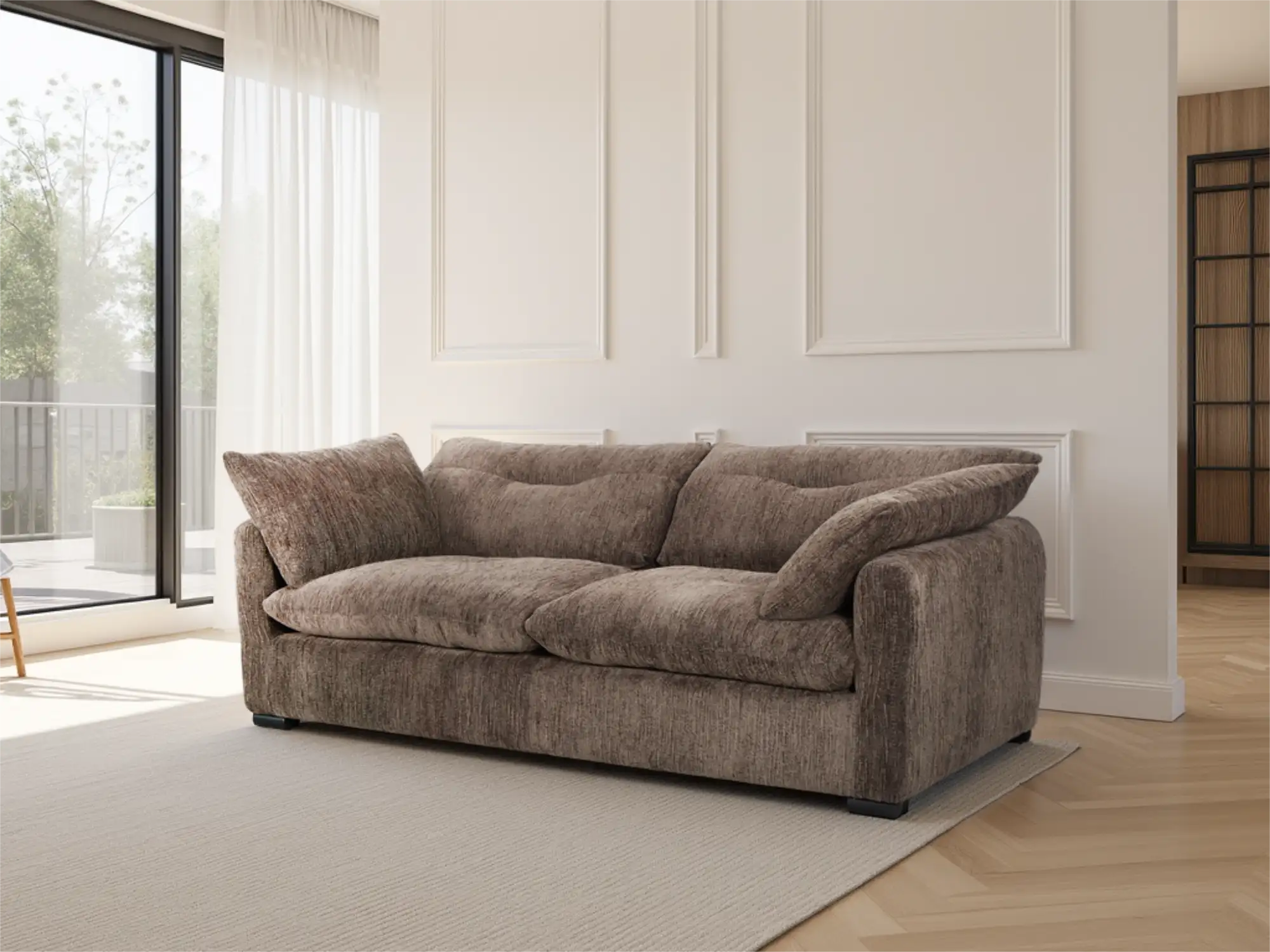 Sophisticated 3-Seater Fabric Sofa in Brown