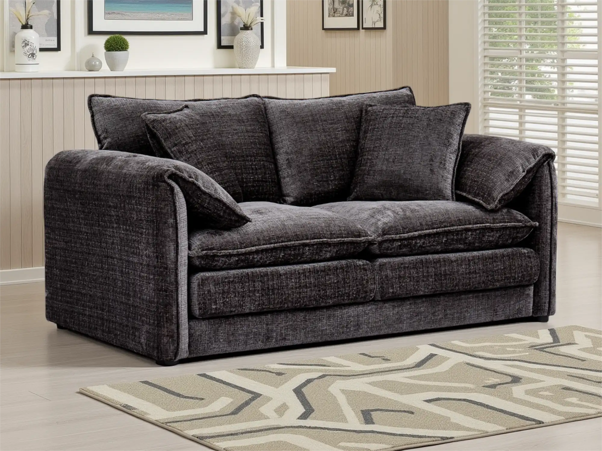 Sophisticated 2-Seater Fabric Sofa in Black