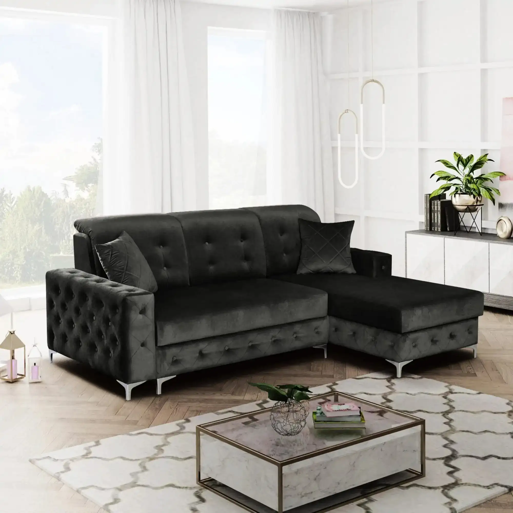 Black Left-Hand Side Sofa Bed