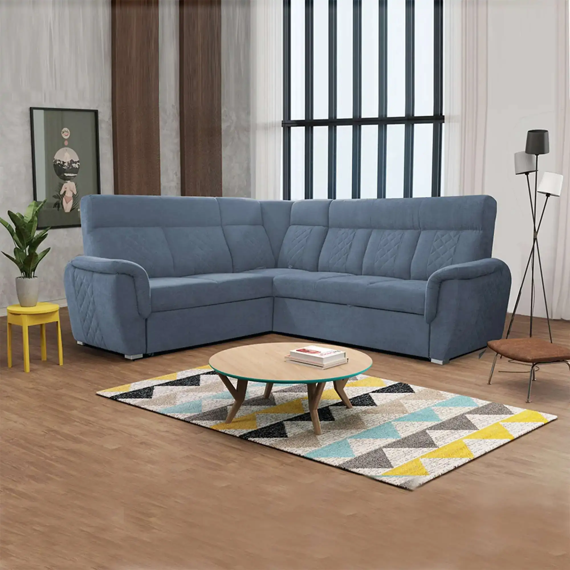 Blue L-Shape Sofa Bed