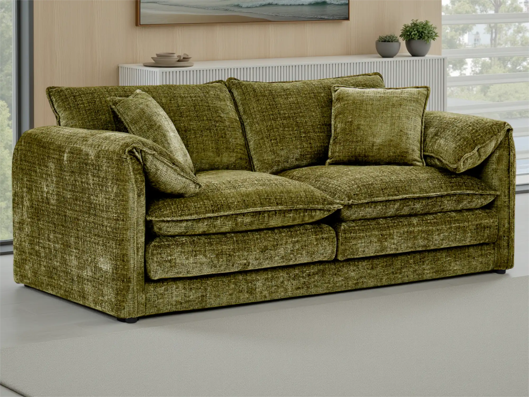 Elegant 3-Seater Fabric Sofa in Olive Green