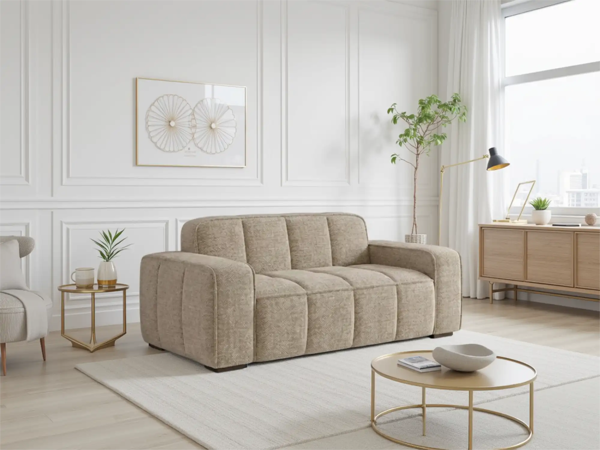 Elegant 2-Seater Fabric Sofa in Olive Green