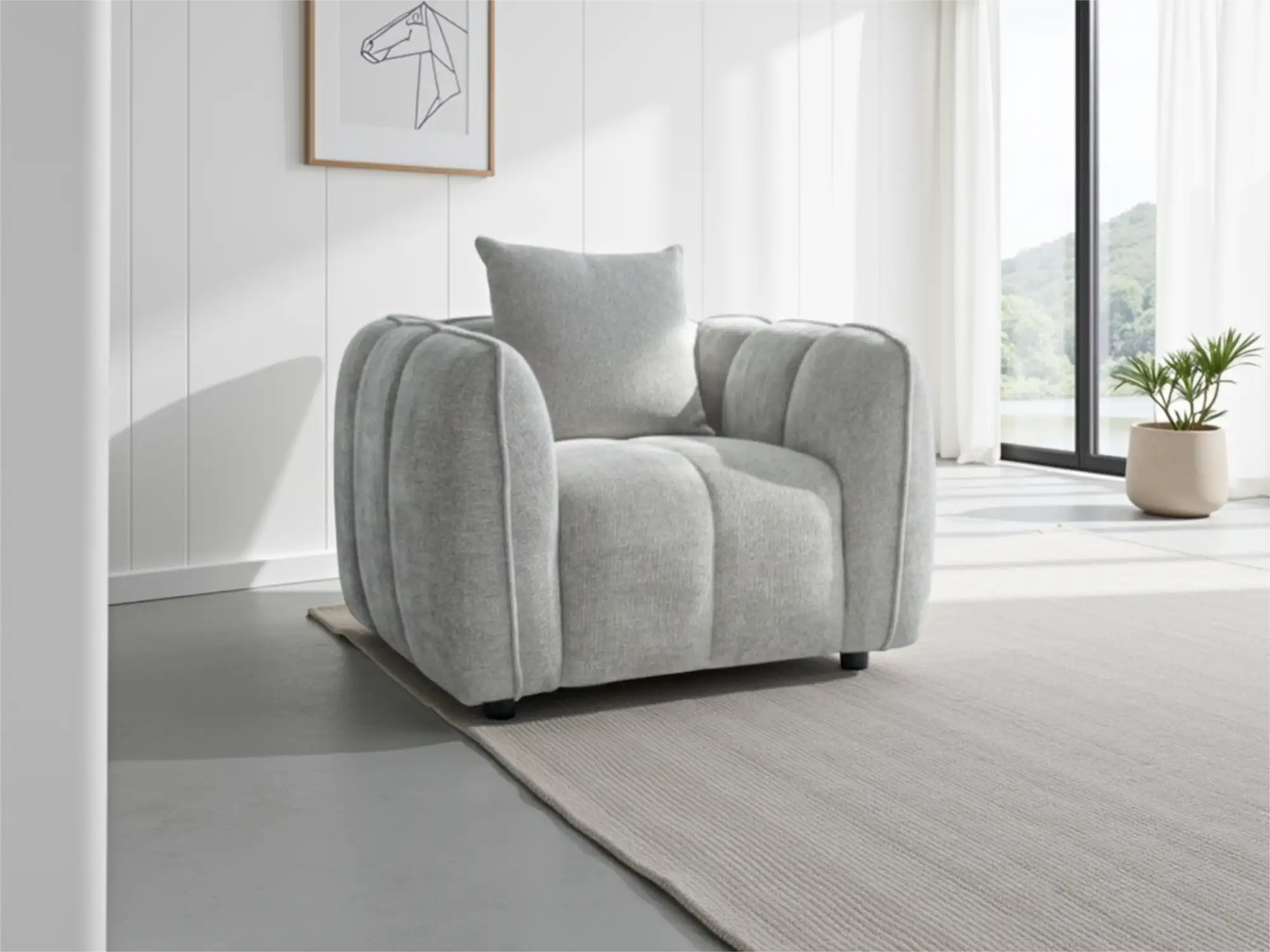 Contemporary Grey Fabric Armchair with Deep Cushions