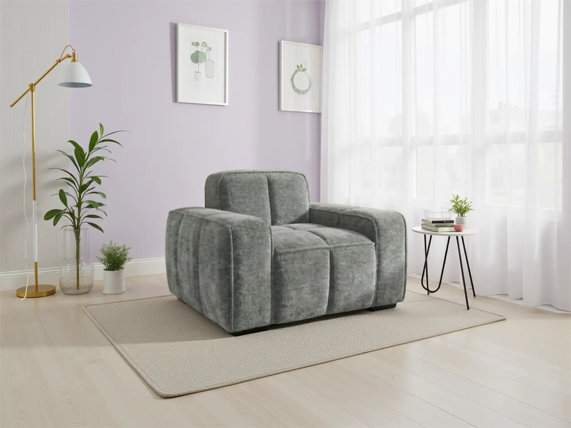 Elegant Grey Chenille Armchair