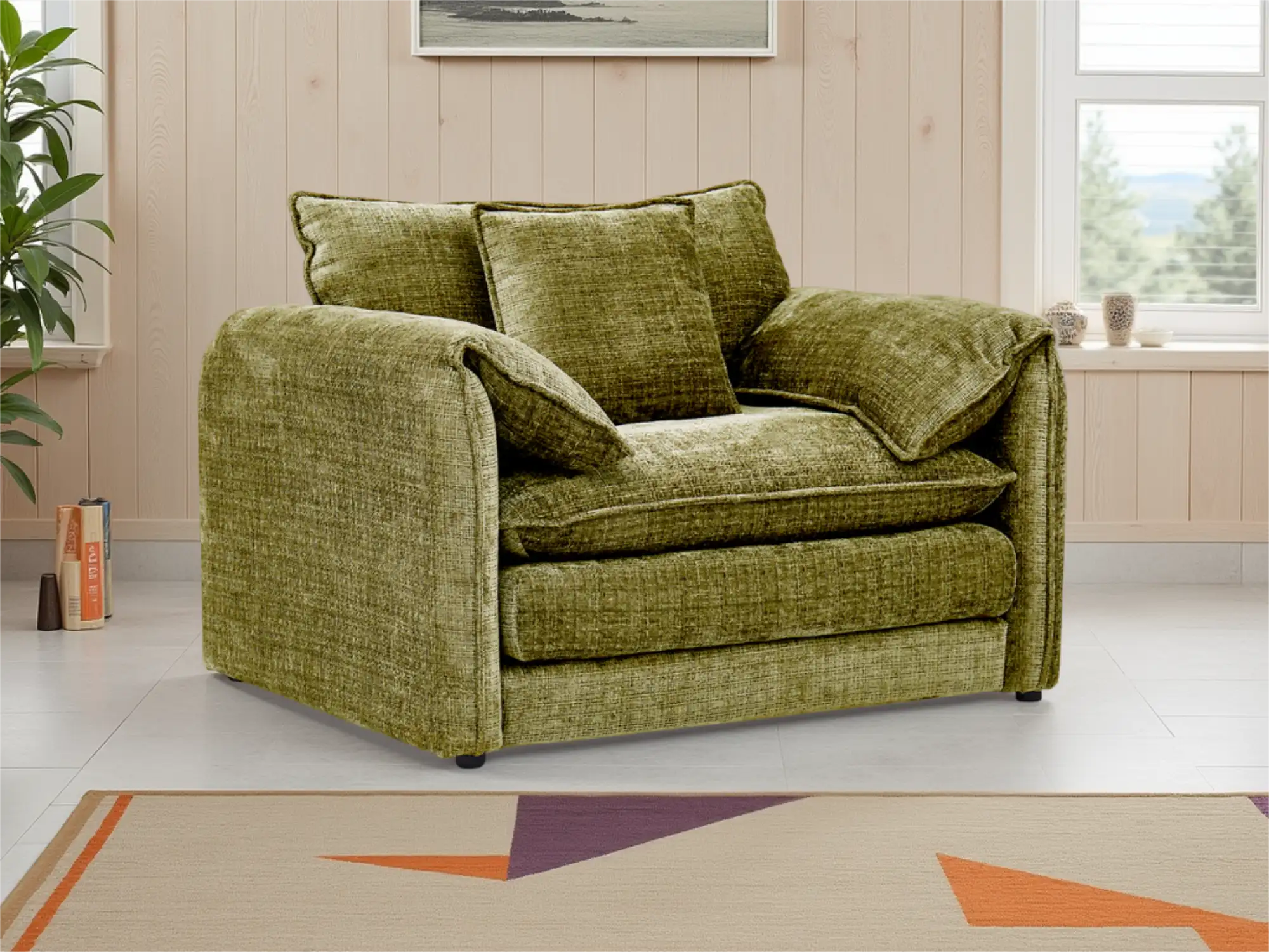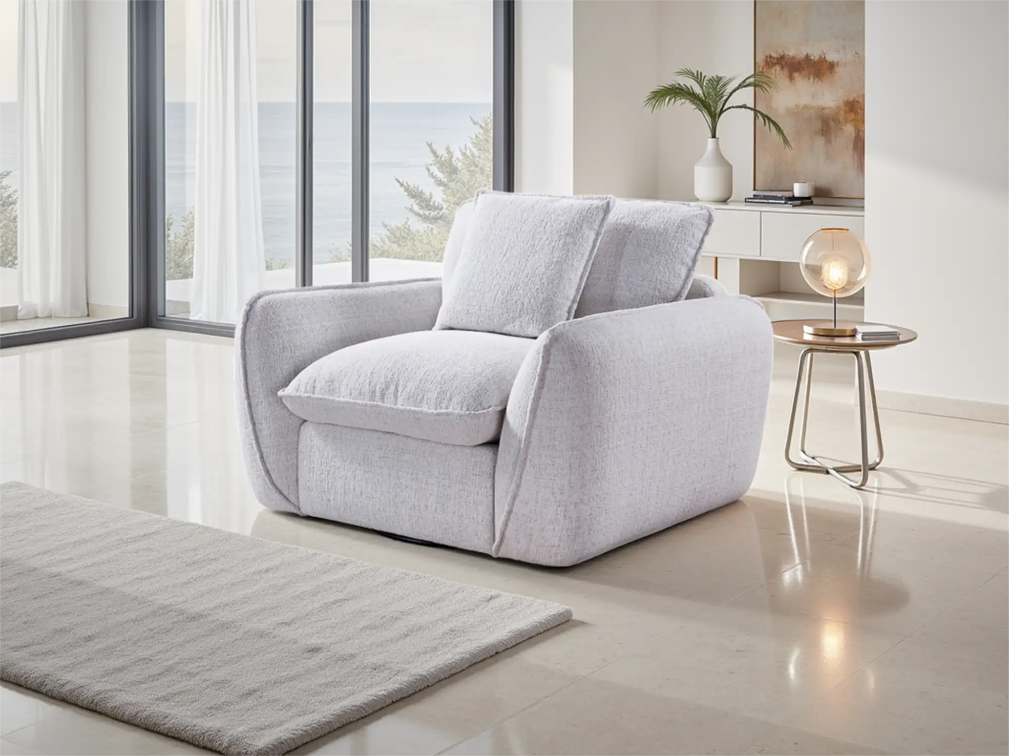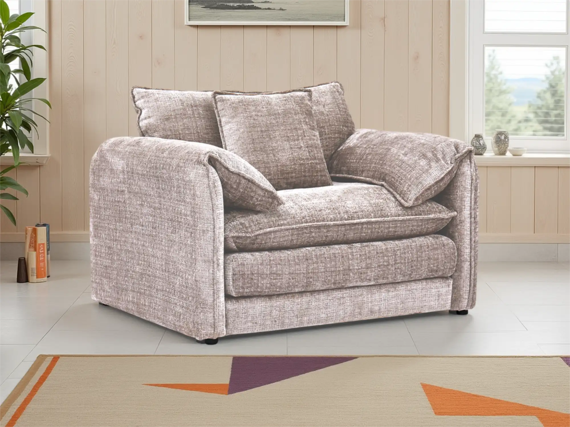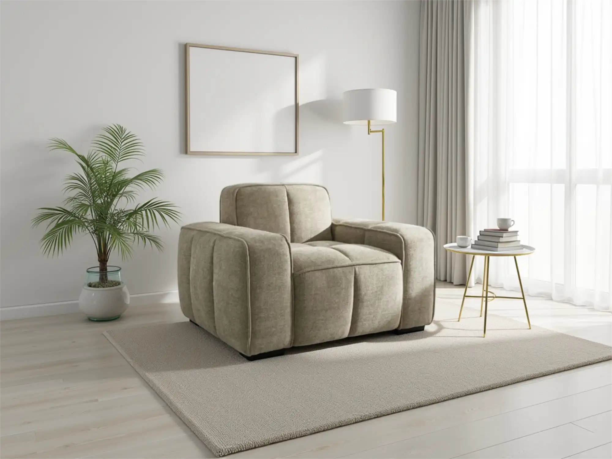 Contemporary Beige Armchair with Deep Cushions