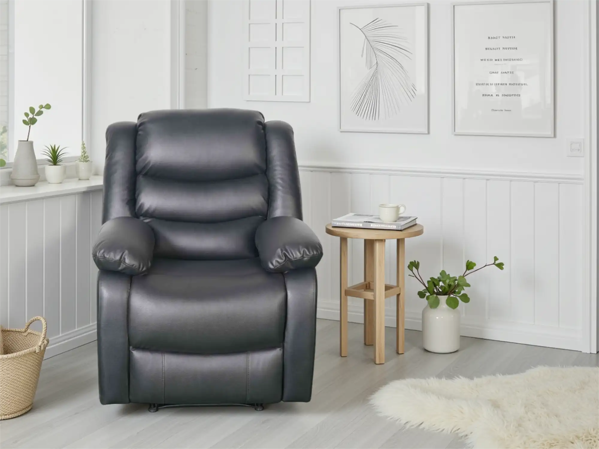Contemporary Manual Recliner Armchair in Black Bonded Leather