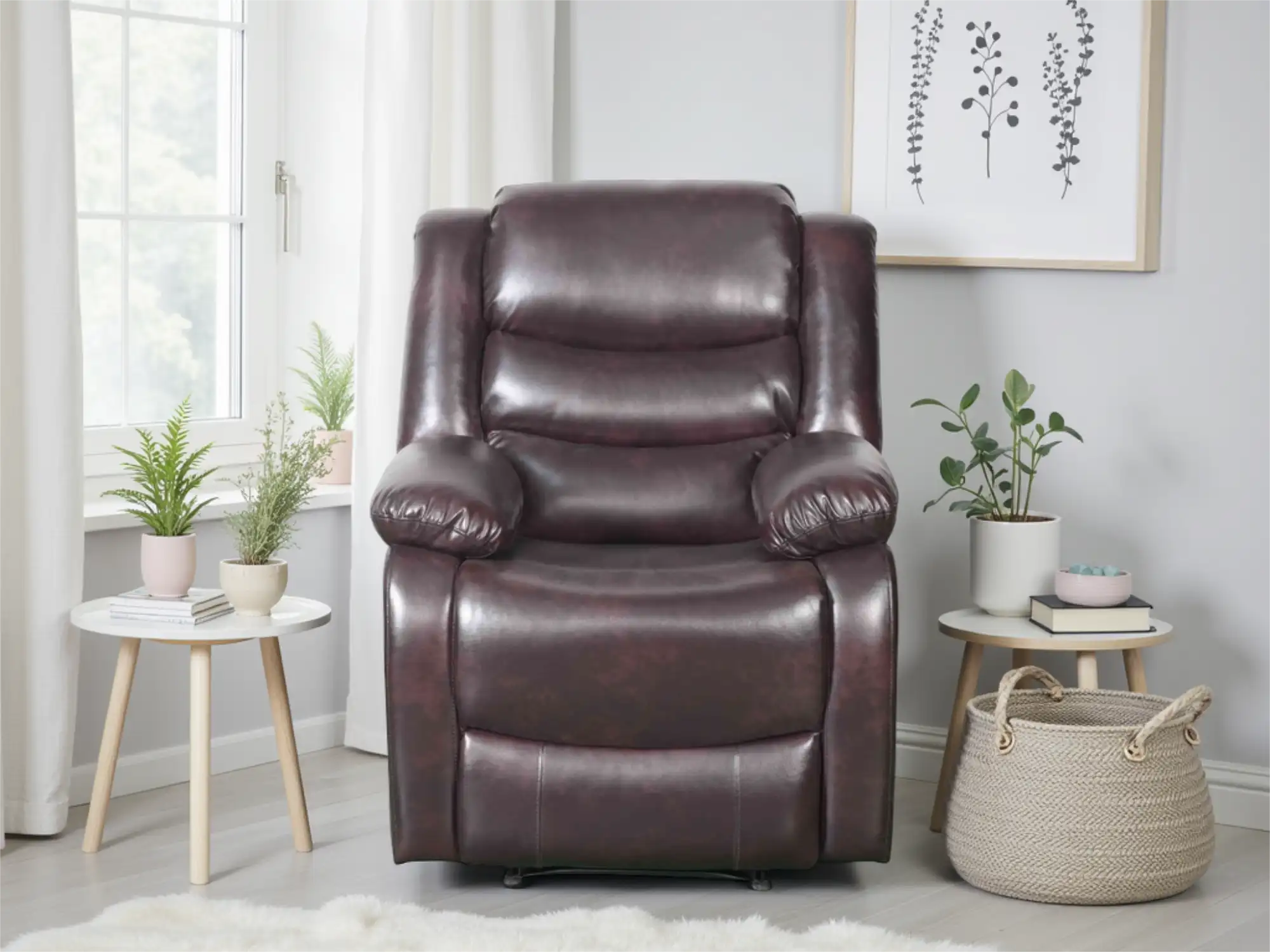 Classic Manual Recliner Armchair in Brown Leather Finish