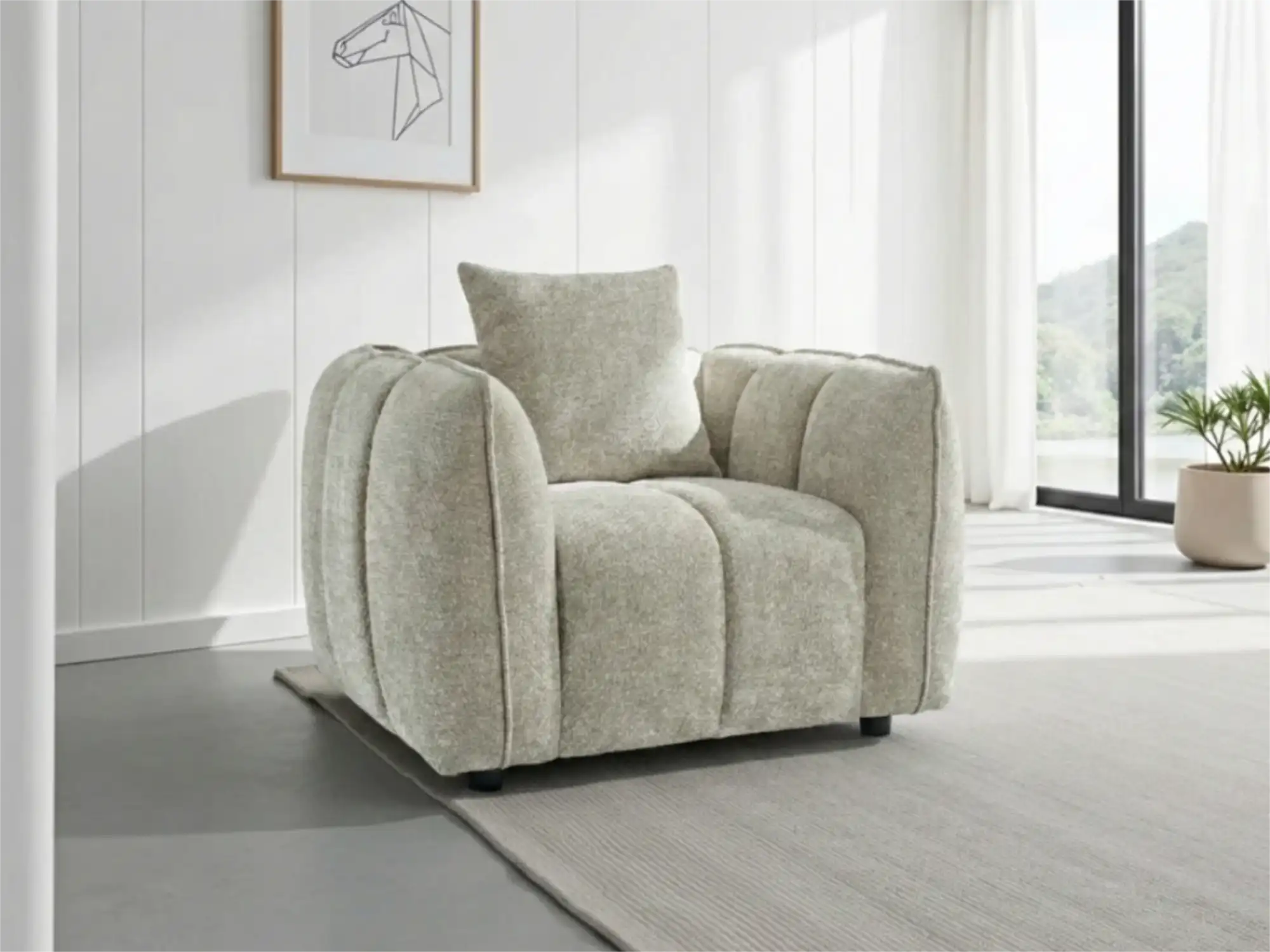 Elegant Cream Chenille Armchair