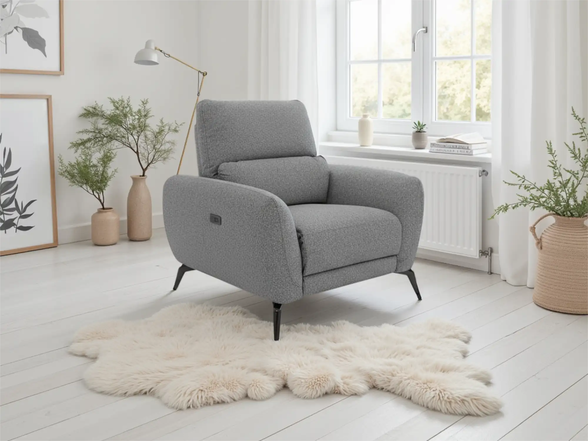 Modern Electric Recliner Armchair in Grey