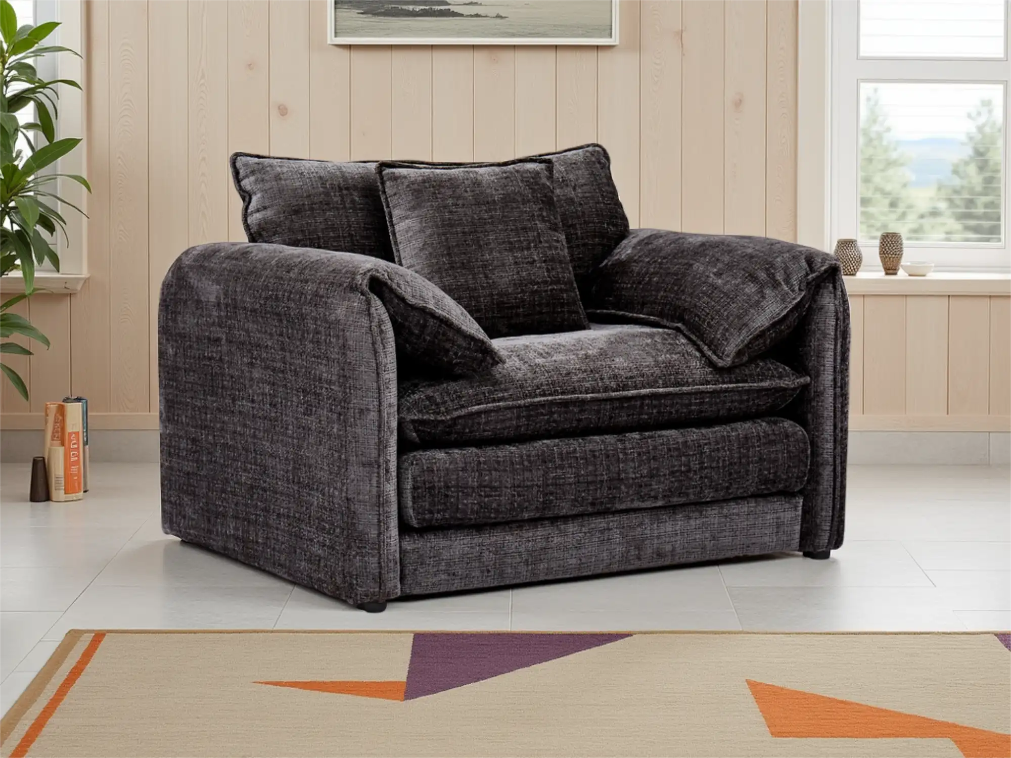 Plush Black Chenille Armchair