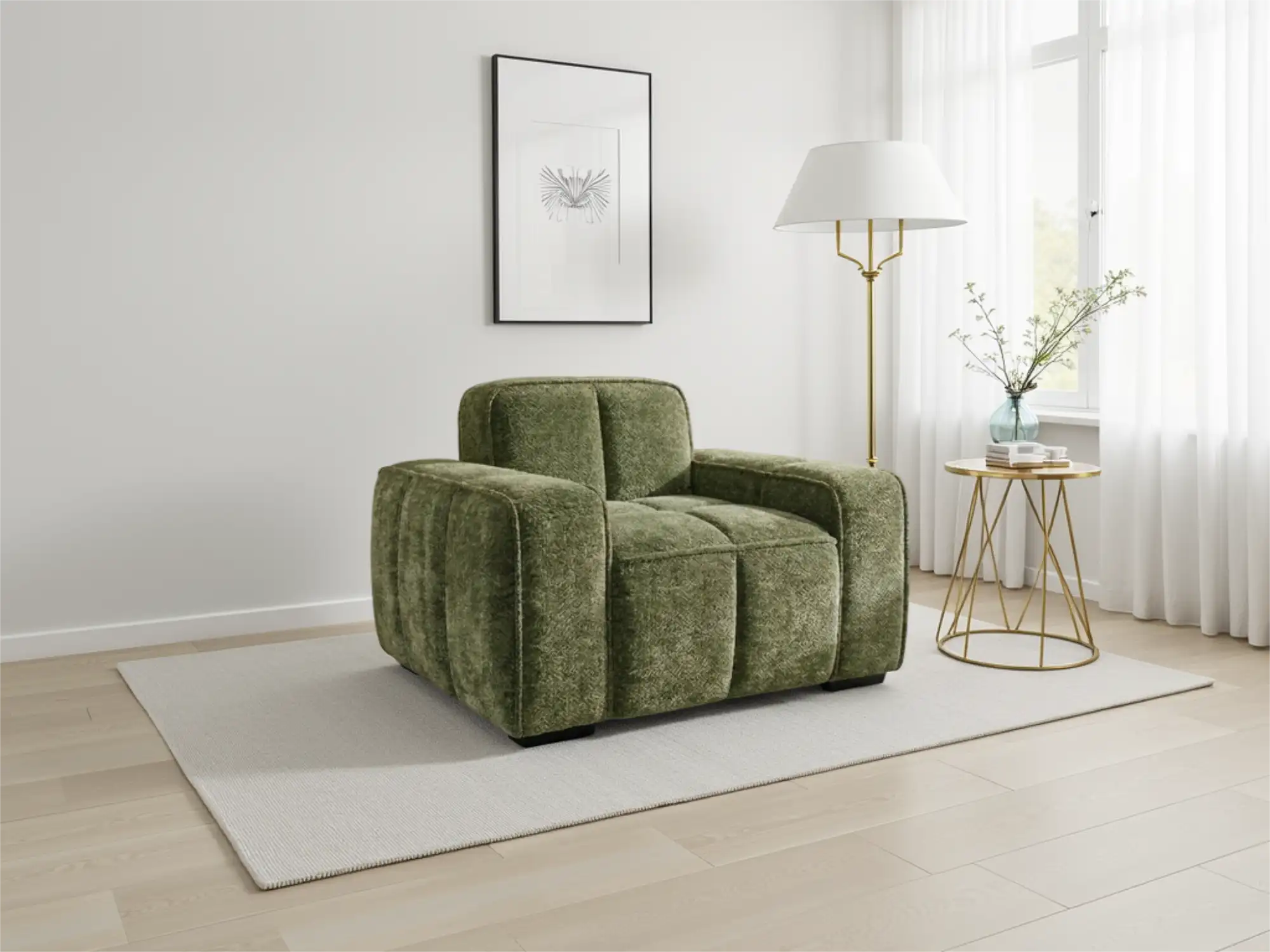 Modern Olive Fabric Armchair